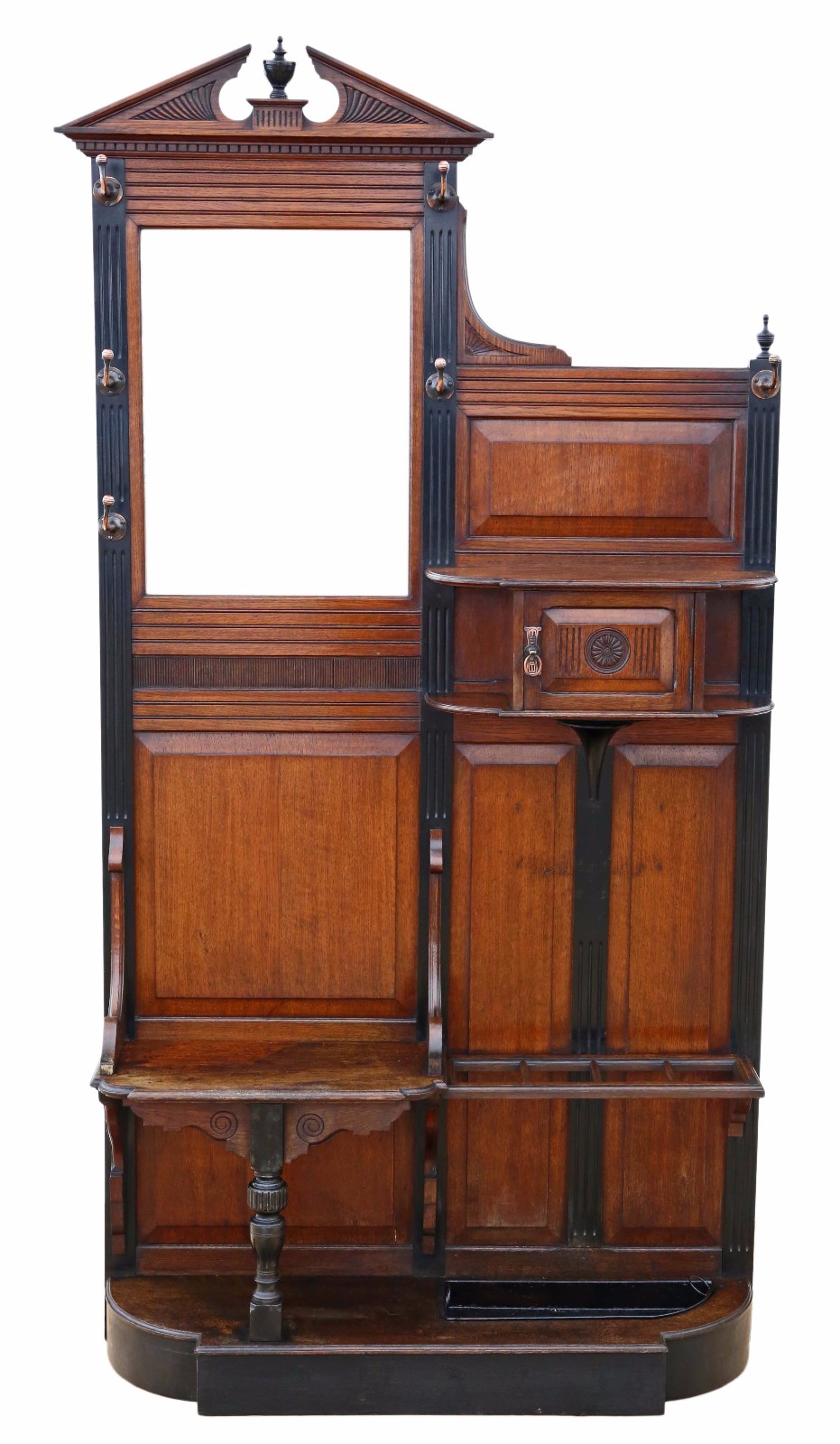Victorian Oak Hall Stand / Coat, Hat & Stick Stand / Umbrella Stand c.1880