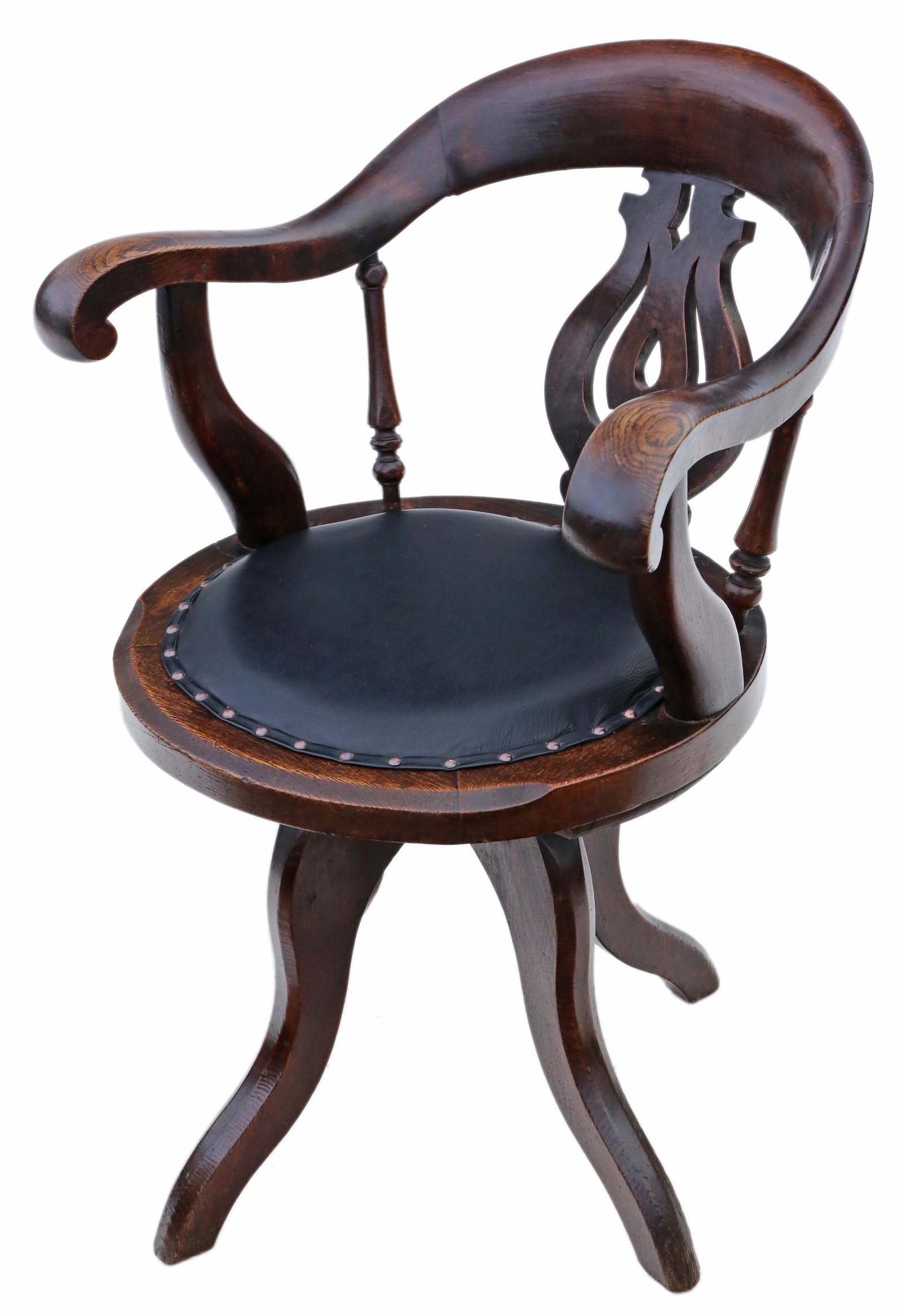 Victorian Oak & Leather Swivel Desk Office Chair c.1880