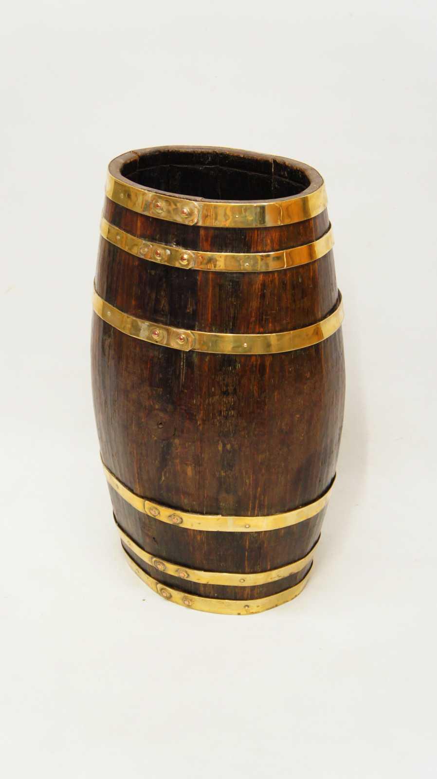 Victorian Oak Oval Barrel & Brass Banded Stick Stand
