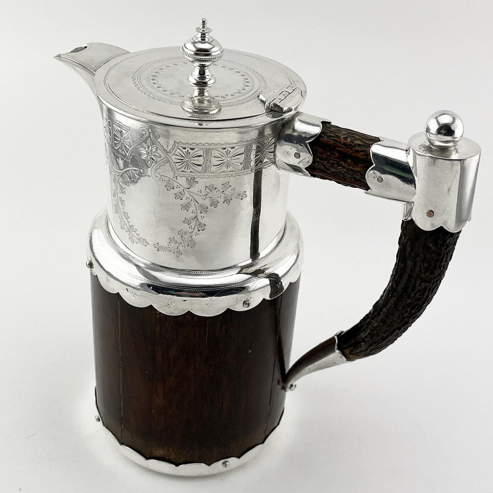 Victorian Oak & Silver Plated Antler Handle Beer / Water Jug