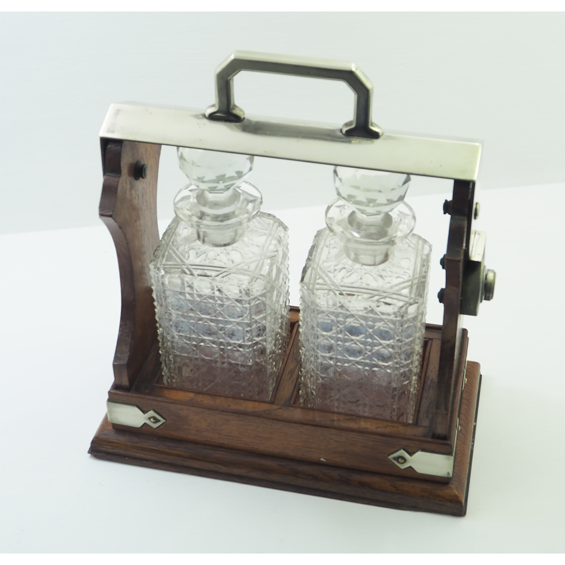 Victorian Oak & Silver Plated Tantalus c.1880