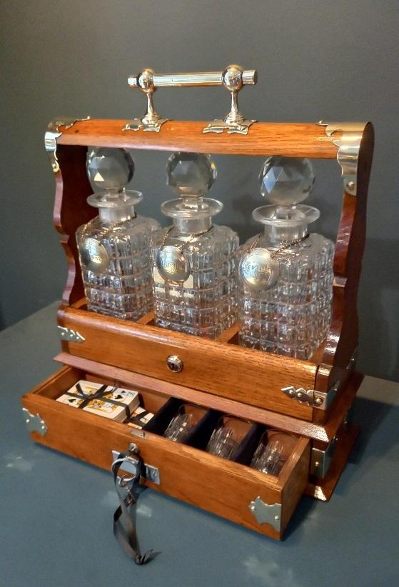 Victorian Oak Tantalus With Games Drawer