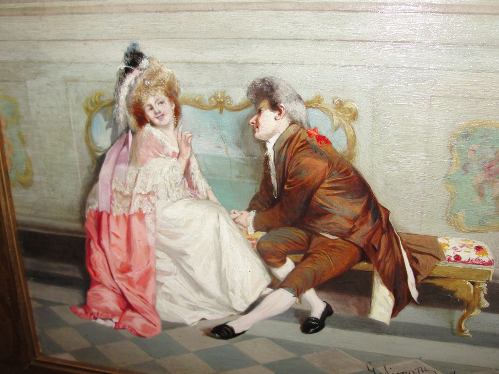 Victorian Oil of 'The Suitor' by Gustavo Simoni c.1873