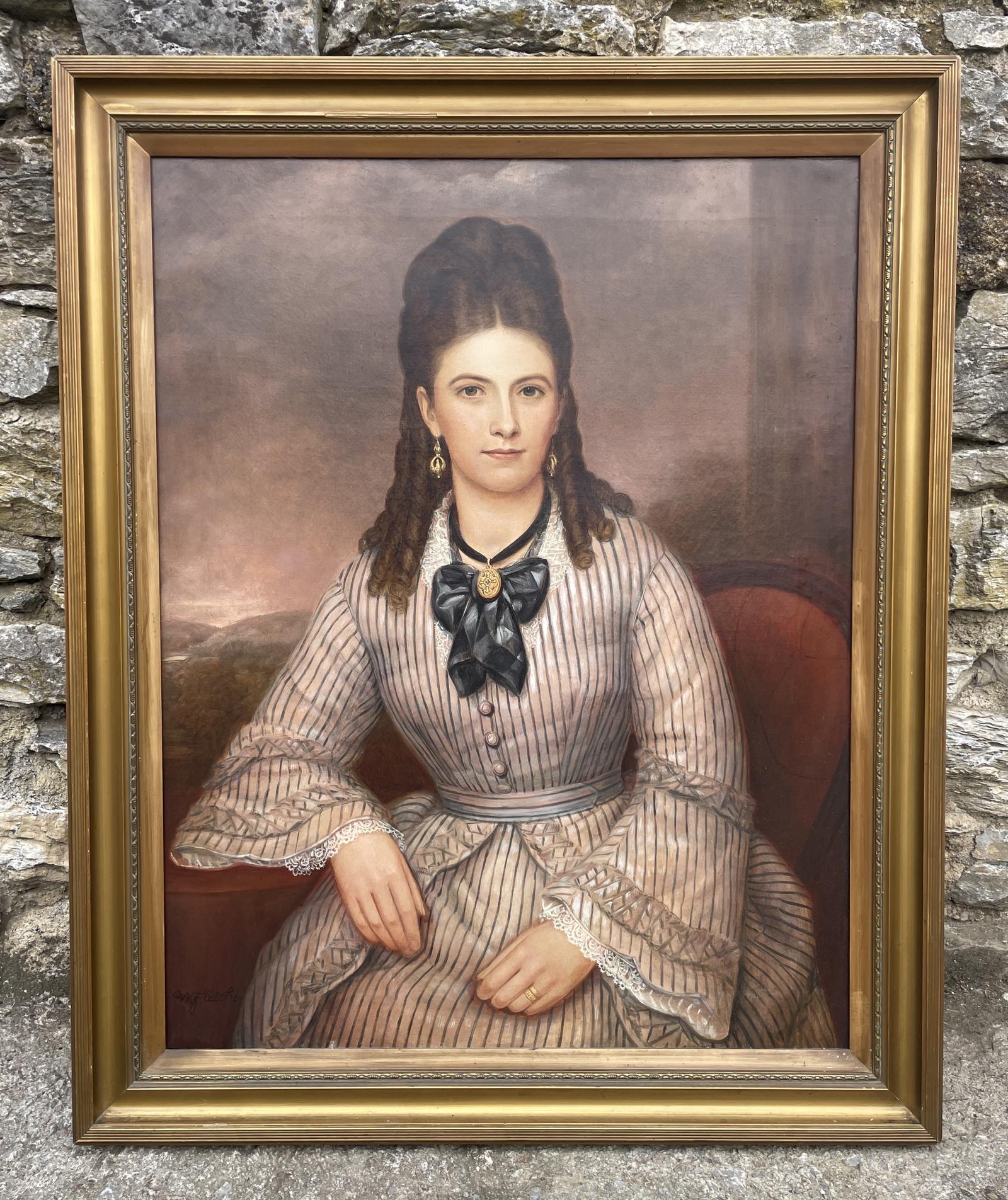Victorian Oil on Canvas Portrait of Emma Witham (1851-1929) by W.Fletcher