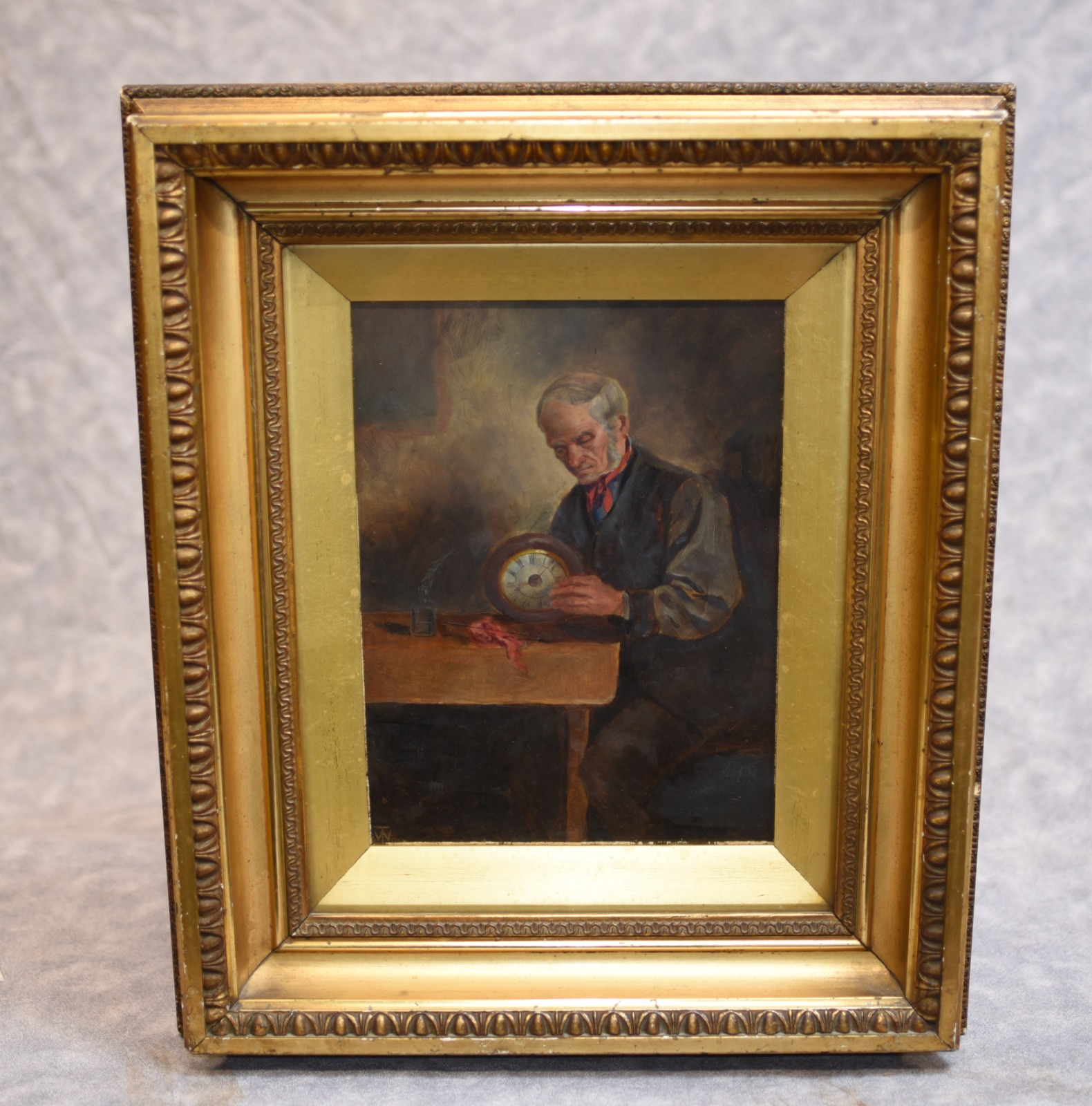 Victorian Oil Painting Clock Maker Horologist Portrait