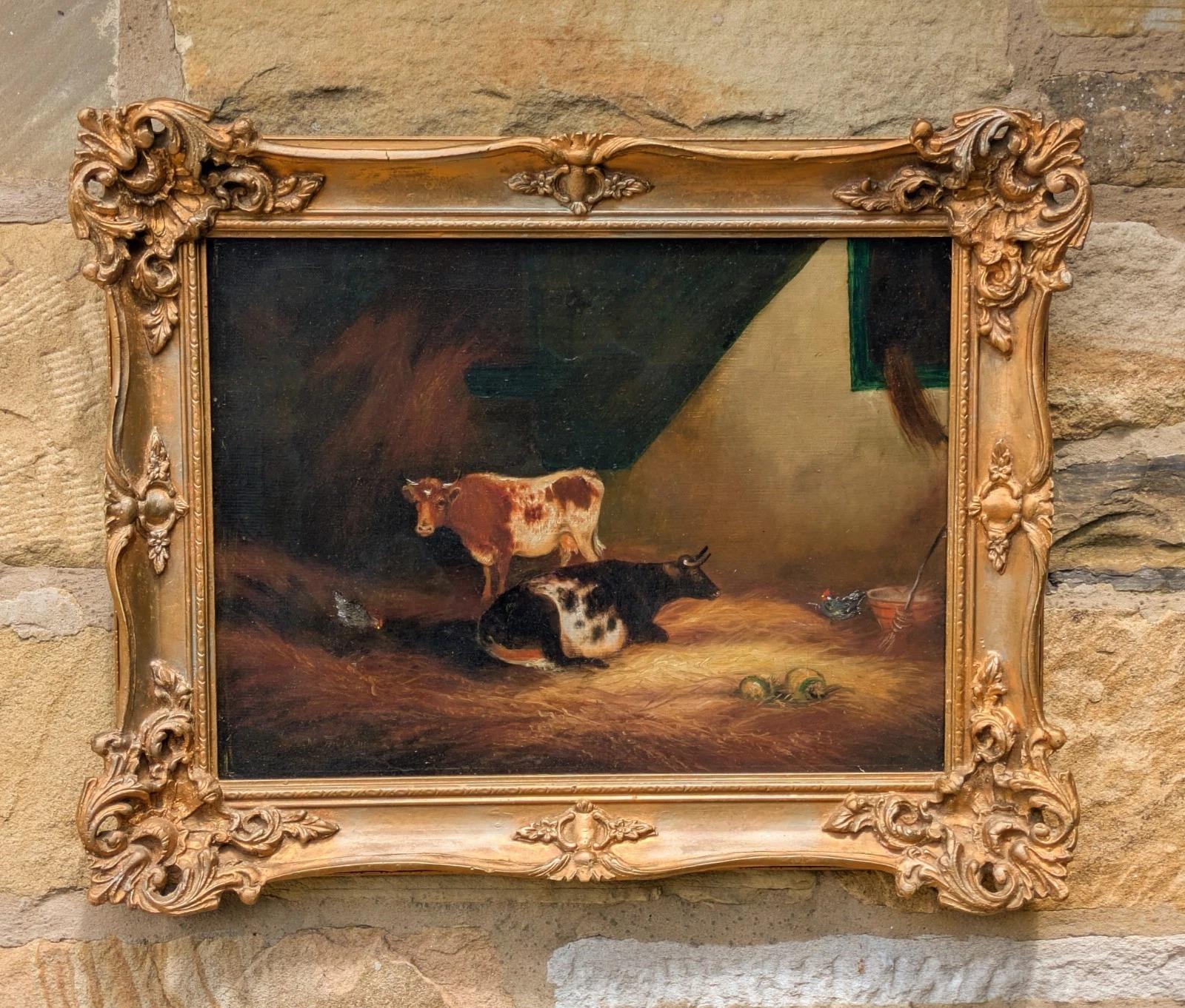 Victorian Oil Painting Cows in Byre