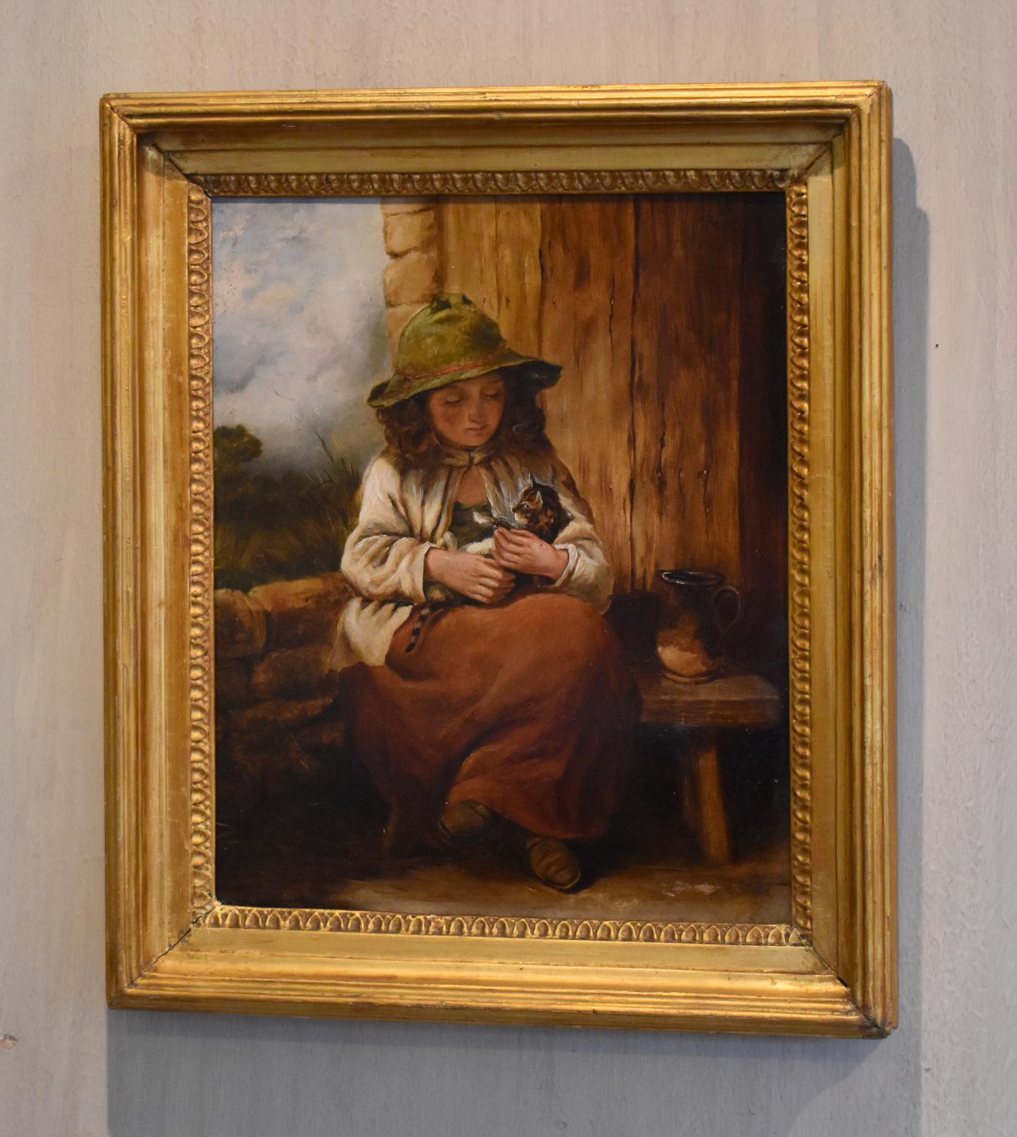 Victorian Oil Painting of a Girl with Kitten (1 of 6)