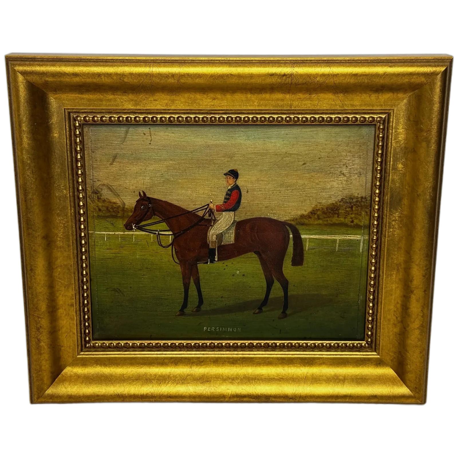 Victorian Oil Painting of Persimmon Racehorse with Jockey Jack Watts – Royal Thoroughbred Owned by King Edward VII – In the Manner of John Frederick Herring Sr. – Newmarket c.1898