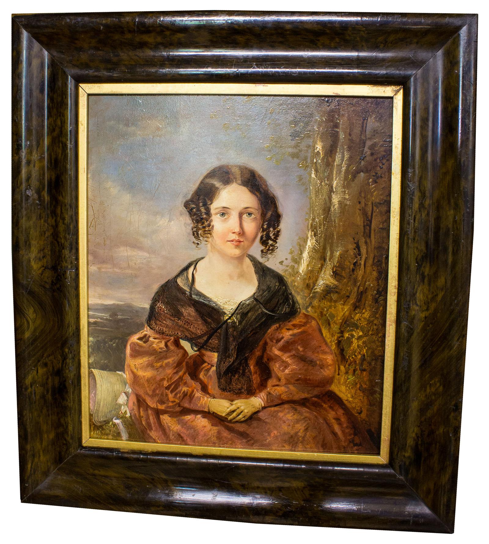 Victorian Oil Painting - Portrait of a Lady with Wringlets