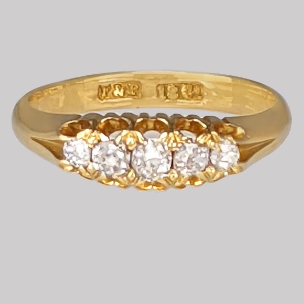 Victorian Old Mine Cut Diamond Ring 18ct Gold Five Stone Diamond Antique Ring