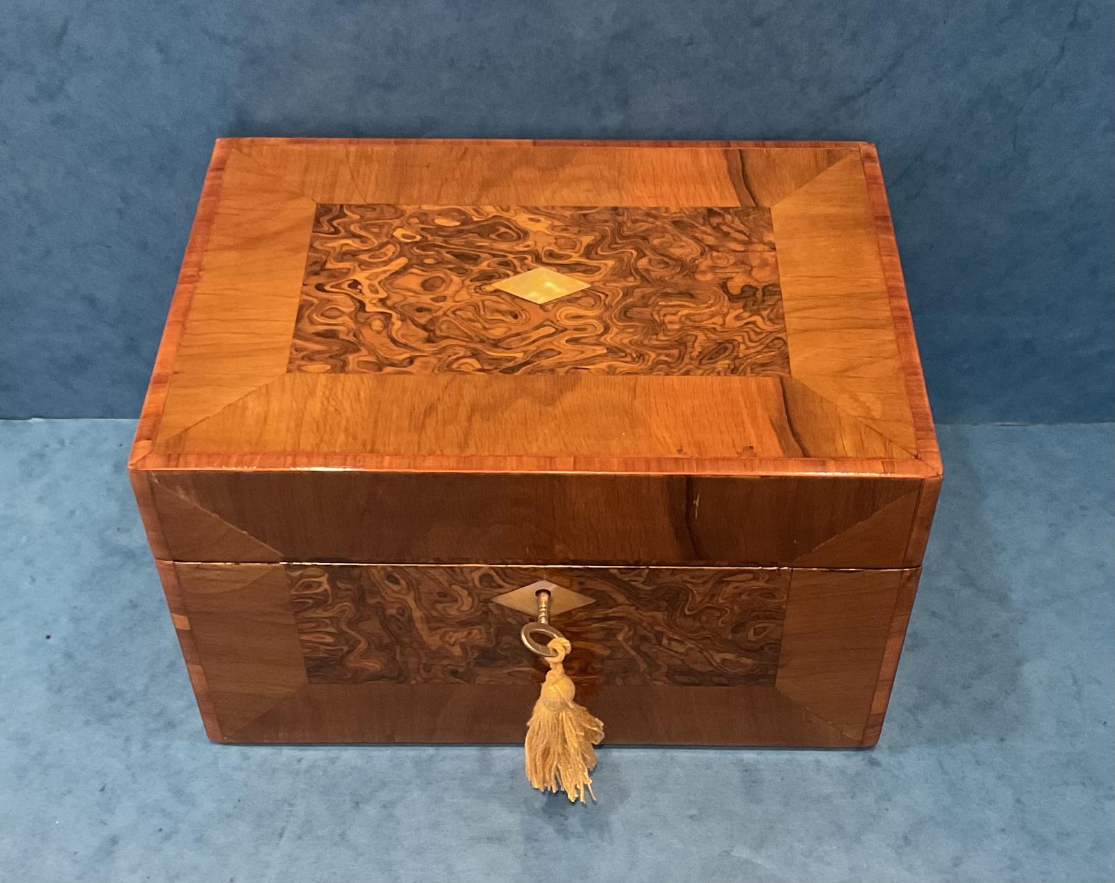 Victorian Olive Wood Cross Banded Box with Laminated Panels