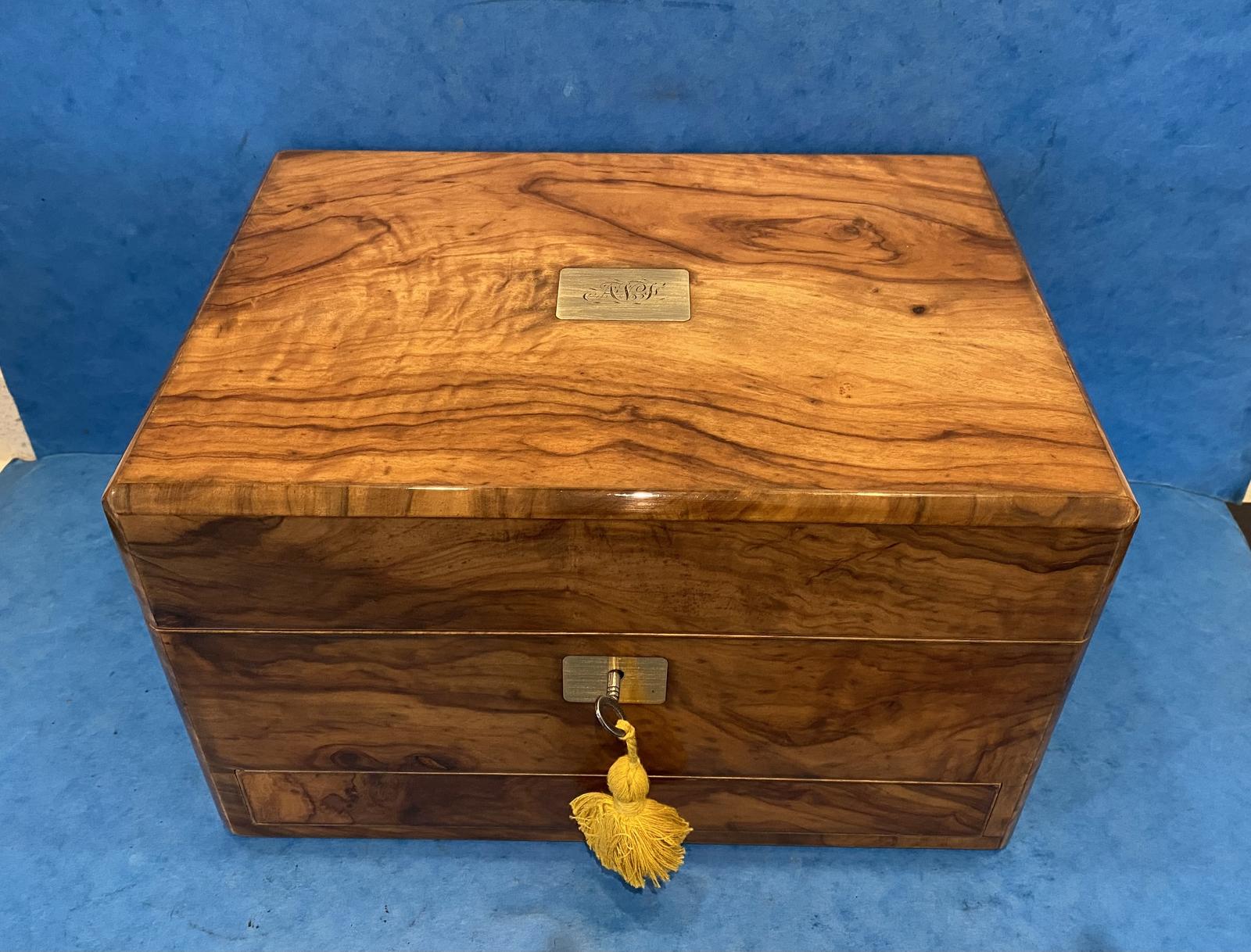 Victorian Olive Wood Jewellery Box Featuring a Front Drawer