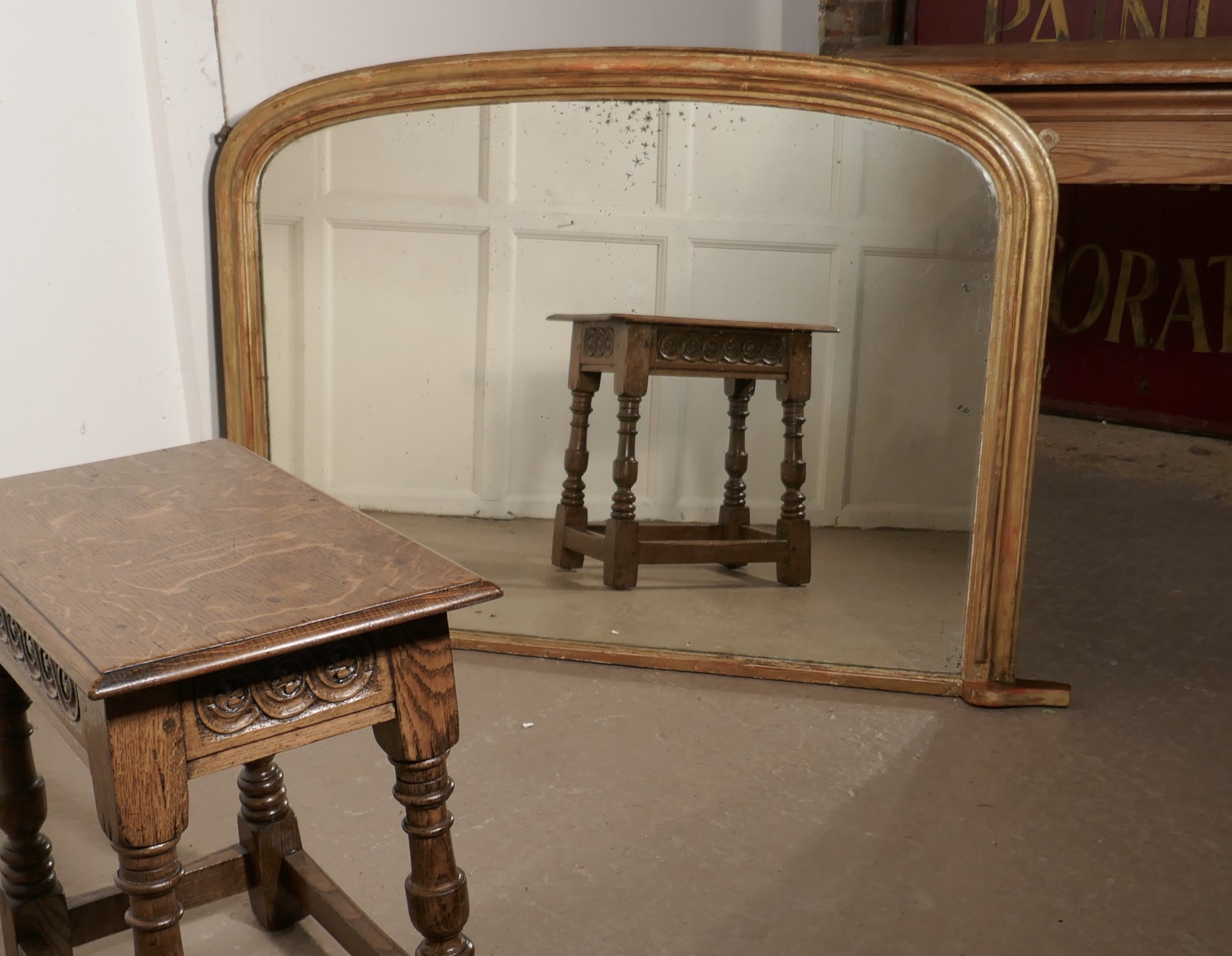 Victorian Original Shabby Look Gold Over Mantle Mirror