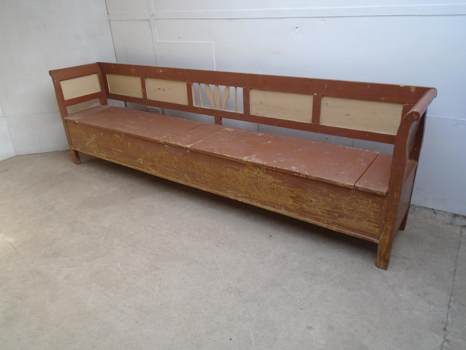 Victorian Originally Painted Antique Pine 3 Metre Box Settle / Bench