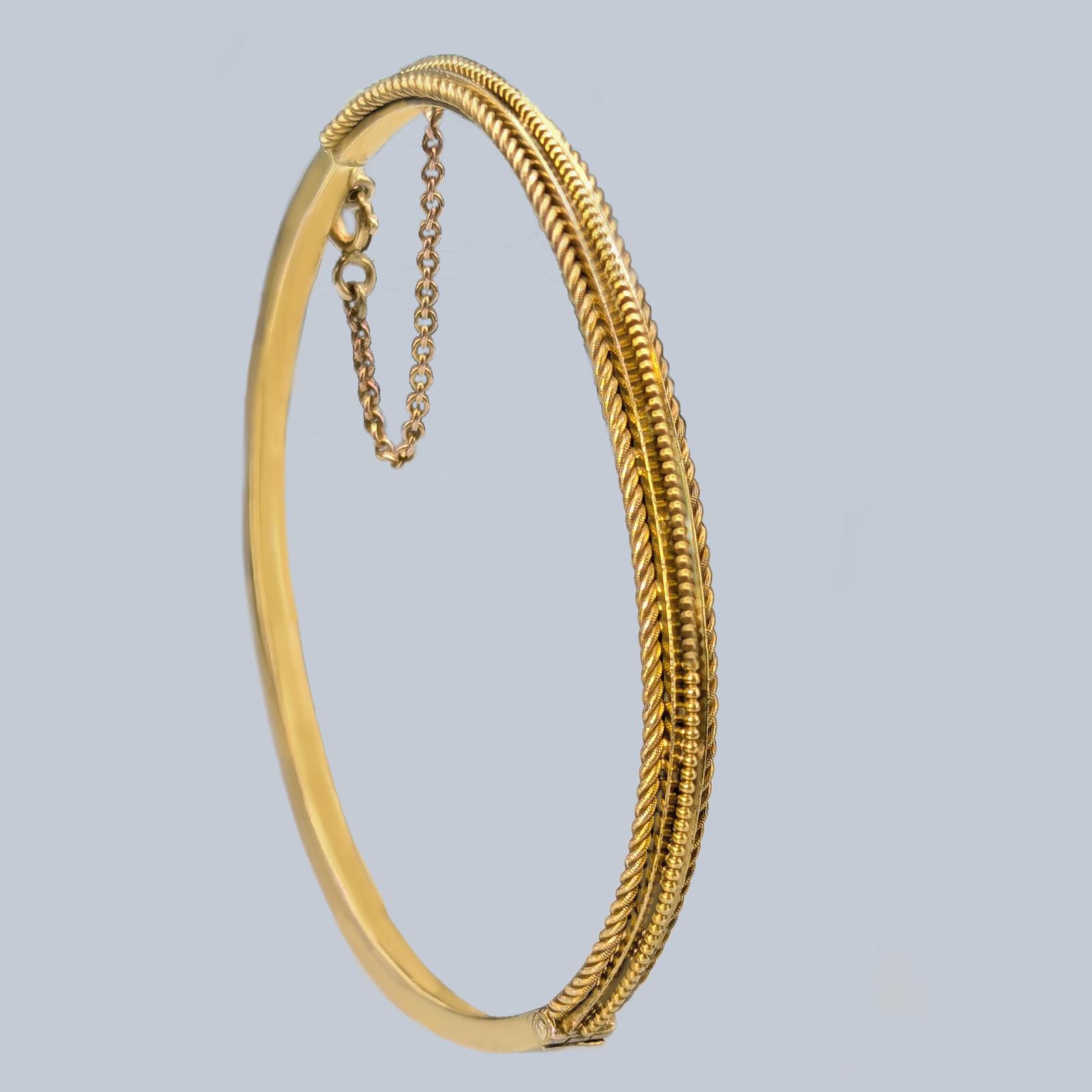 Victorian Ornate Bangle 9ct Gold Antique Rope Twist Bracelet Vintage Circa 1890