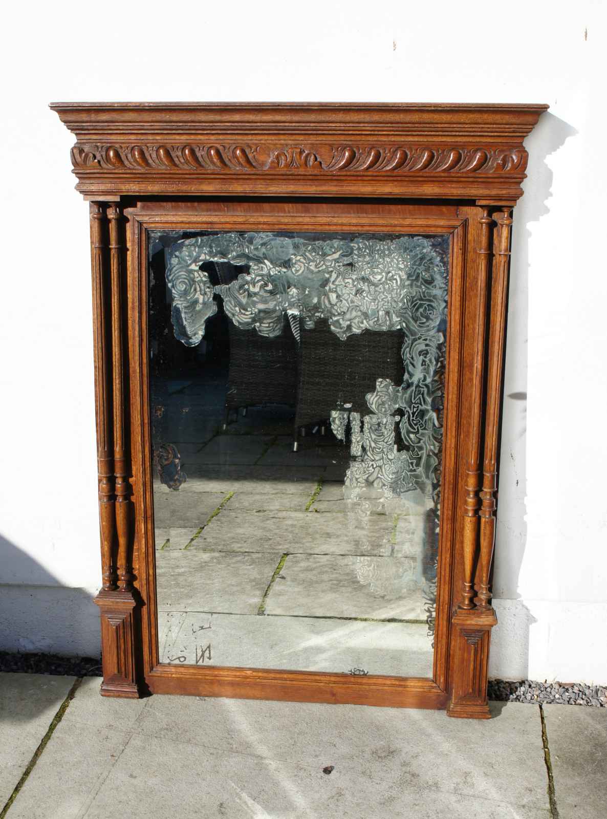 Victorian Ornate Oak Overmantle Mirror, Distressed Plate