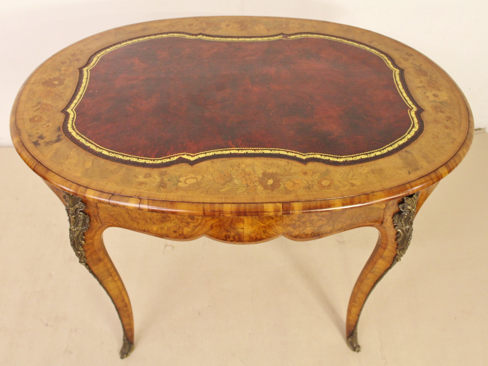 Victorian Oval Burr Walnut & Marquetry Writing Table (1 of 1)