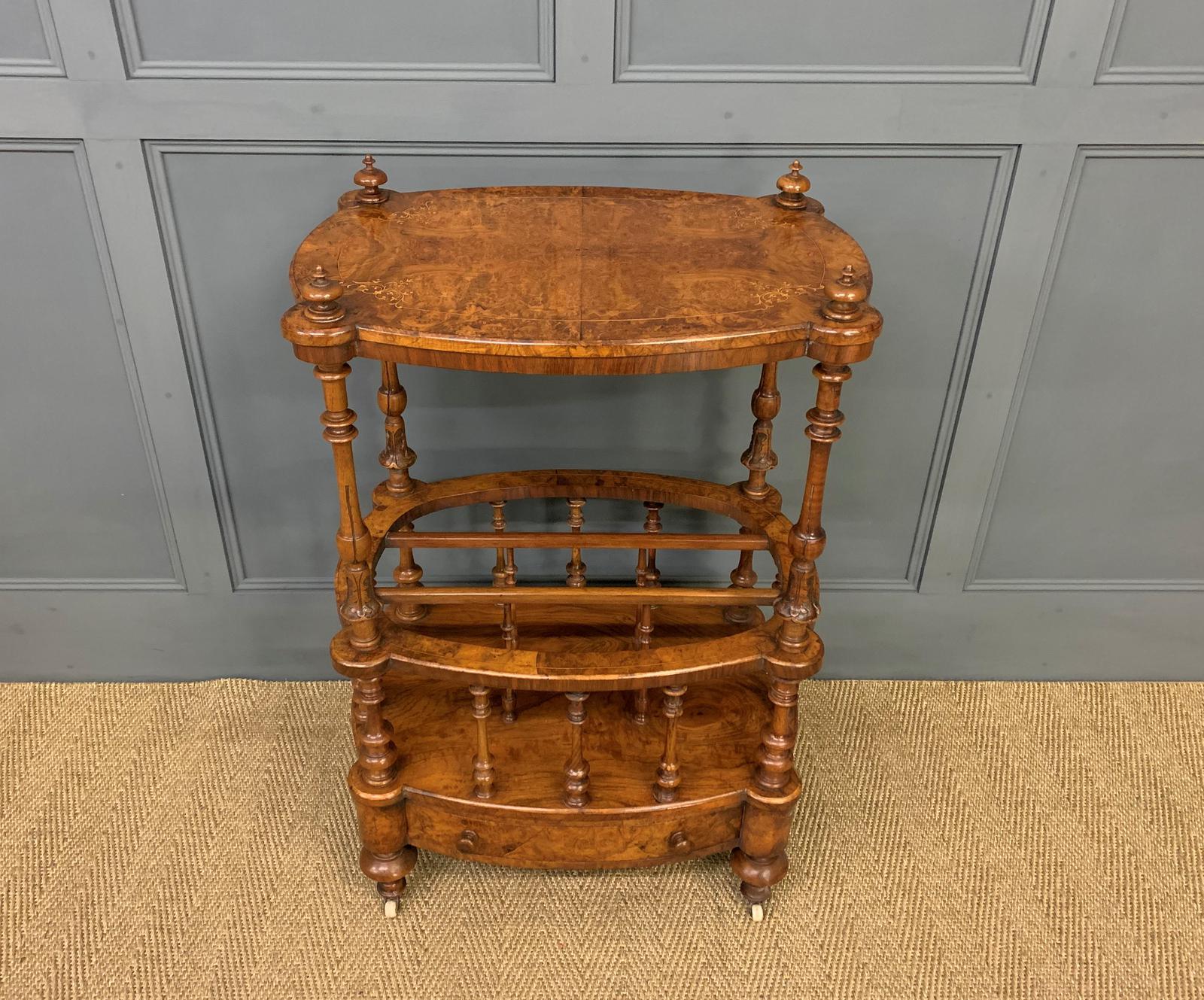 Victorian Oval Inlaid Burr Walnut Canterbury Whatnot