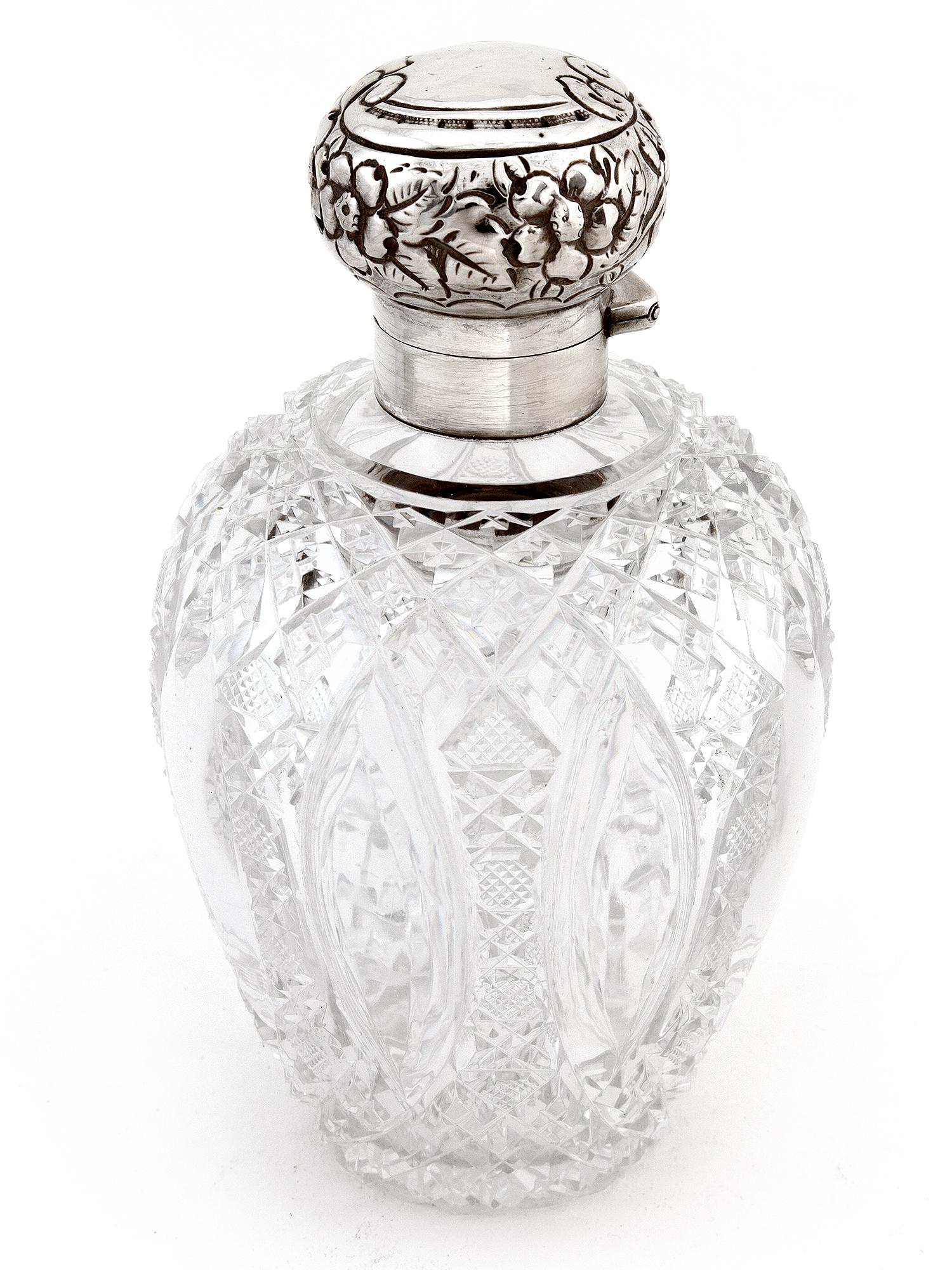 Victorian Ovoid Shape Cut Glass and Silver Perfume Bottle