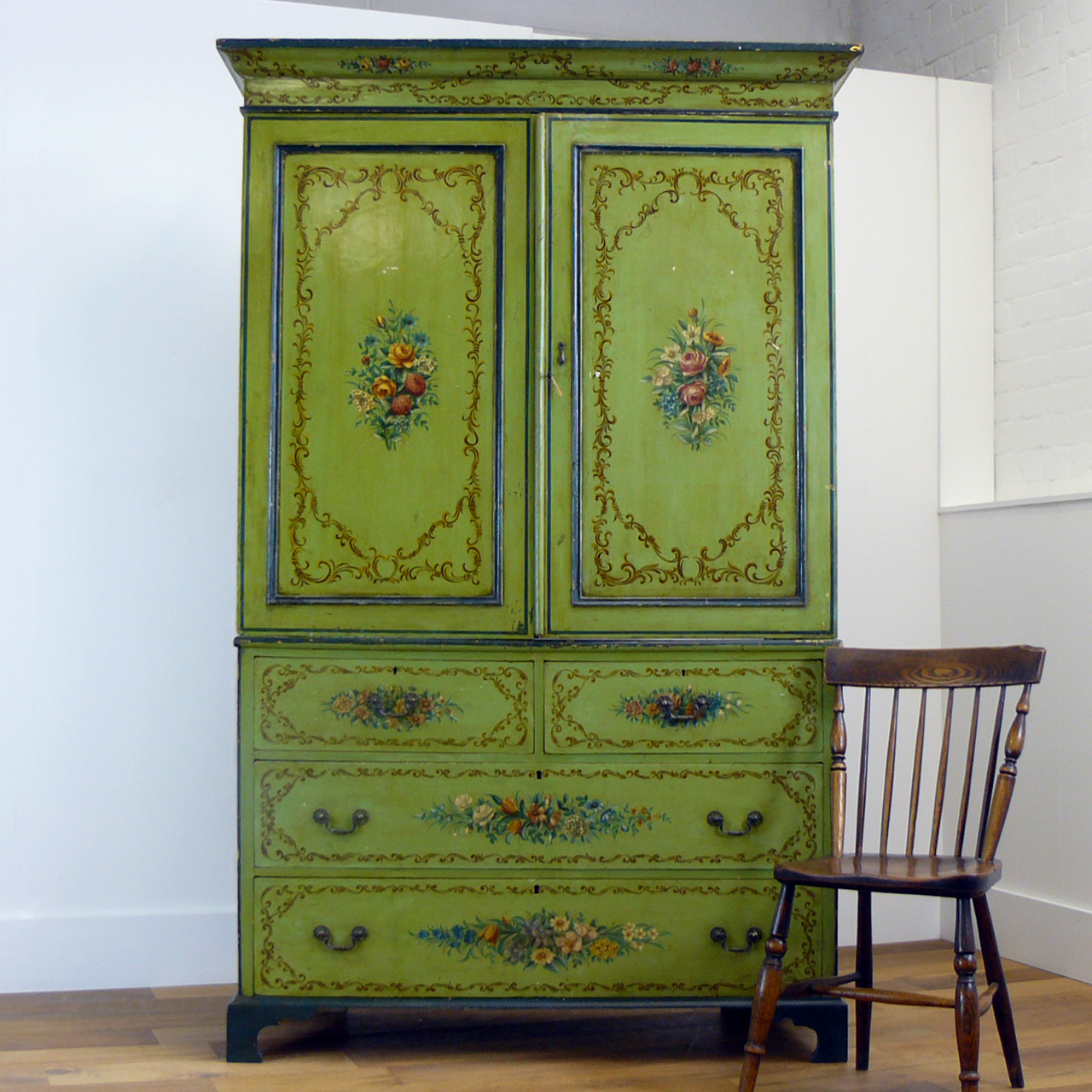 Victorian Painted Linen Press Cupboard Cabinet (1 of 1)