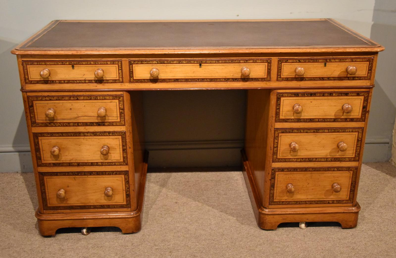 Victorian Painted Pine Pedestal Desk