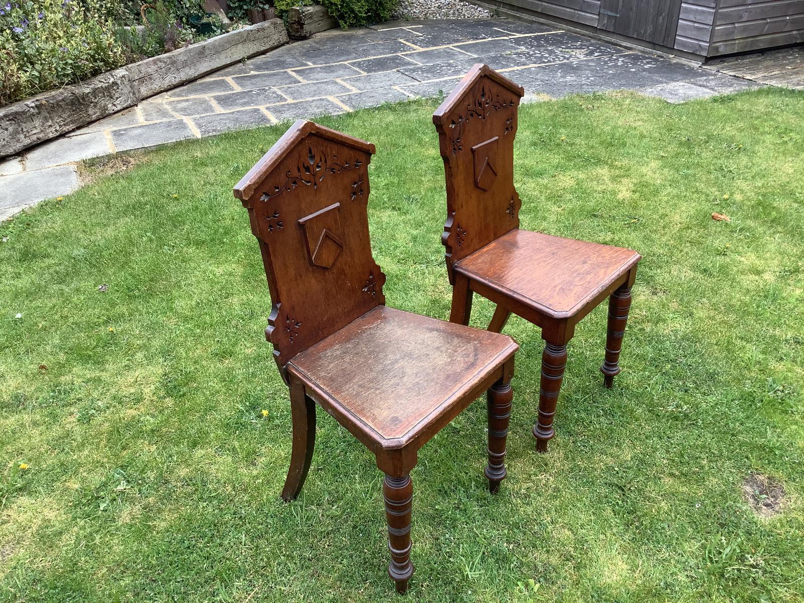 Victorian Pair of Oak Hall Chairs