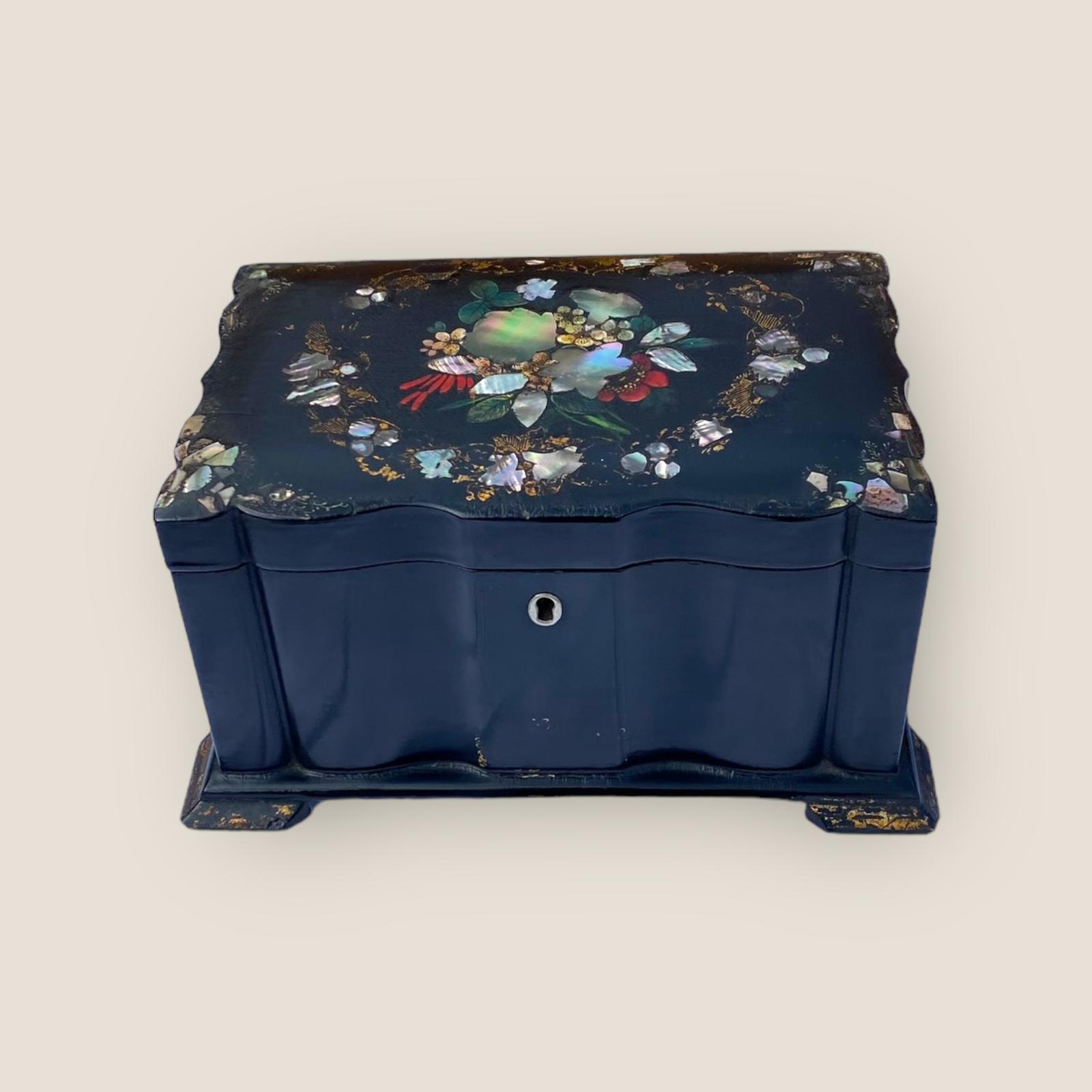 Victorian Papier-Mâché Tea Caddy with Mother of Pearl