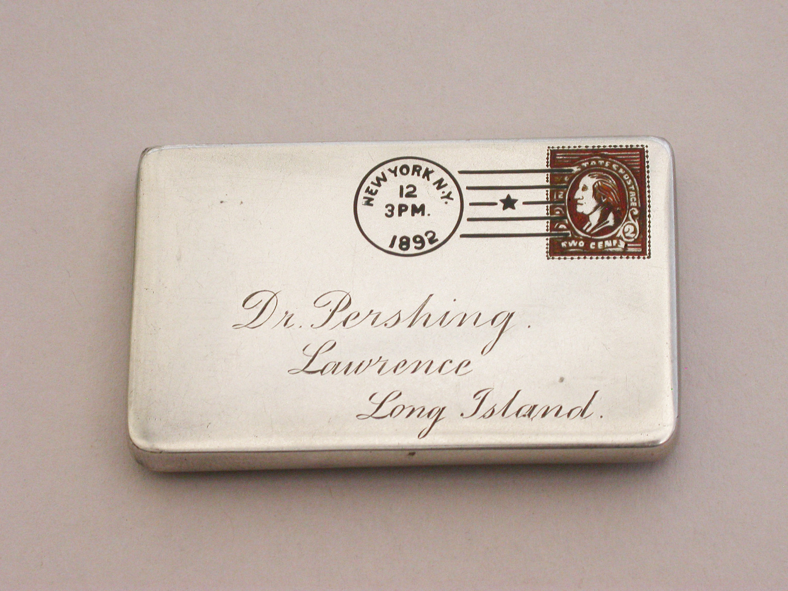 Victorian Patented American Sterling Silver & Enamel Envelope Form Double Stamp Case