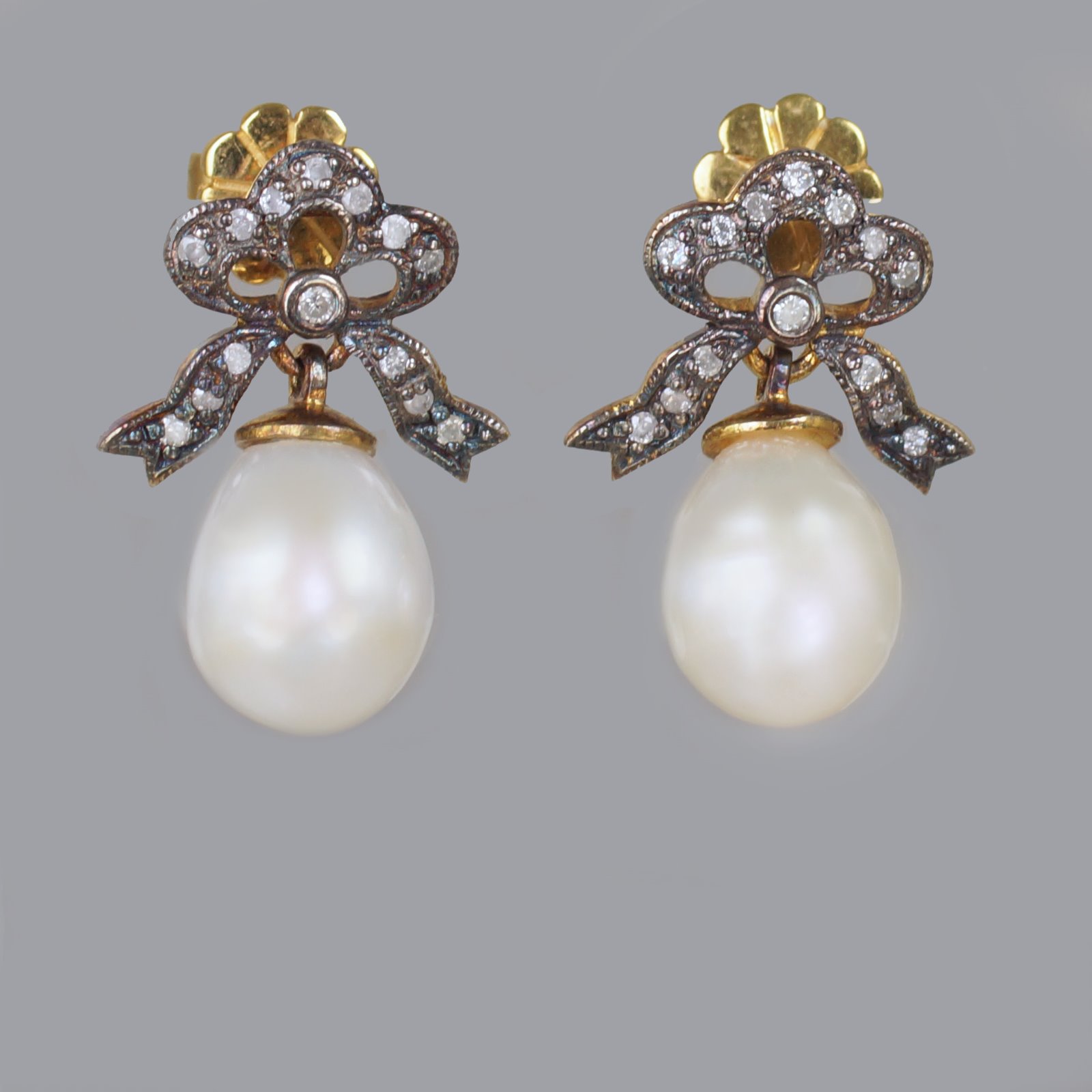 Victorian Pearl & Diamond Drop Earrings 18ct Gold & Silver Antique Dangle Earrings