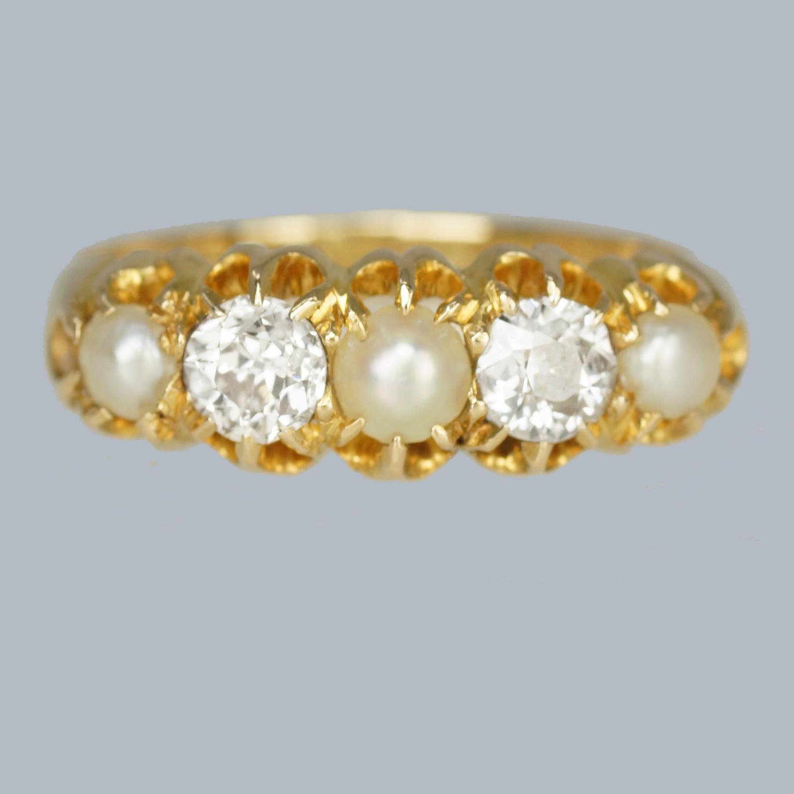 Victorian Pearl & Old Cut Diamond Ring 18ct Gold Antique Ring Hallmarked 1896