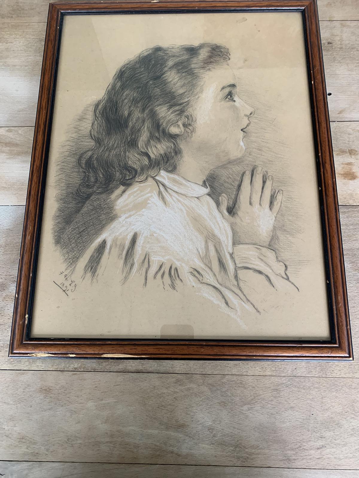 Victorian Pencil and Chalk Sketch or Drawing of a Young Girl 1891