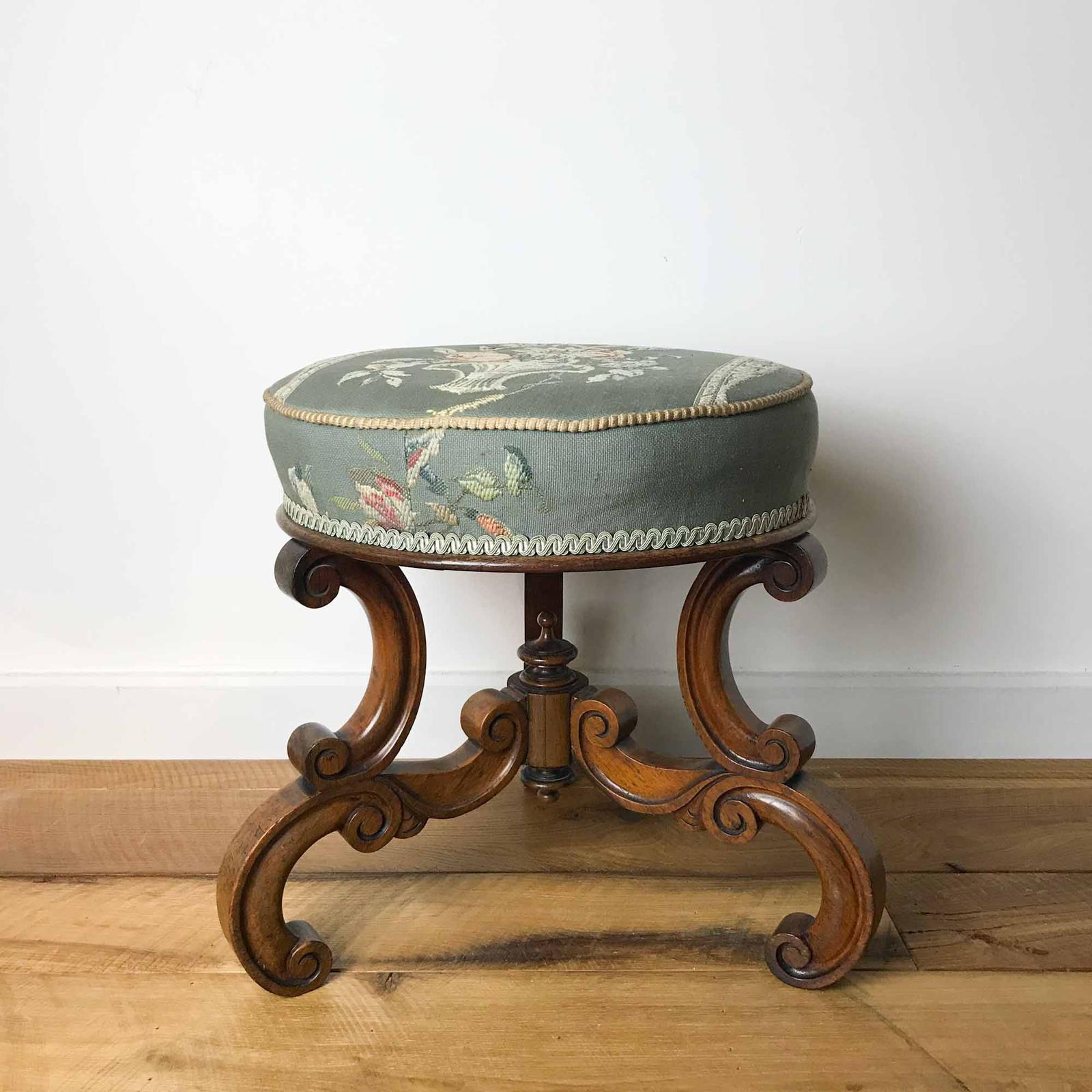 Victorian Piano Stool in Carved Rosewood, Upholstered Seat