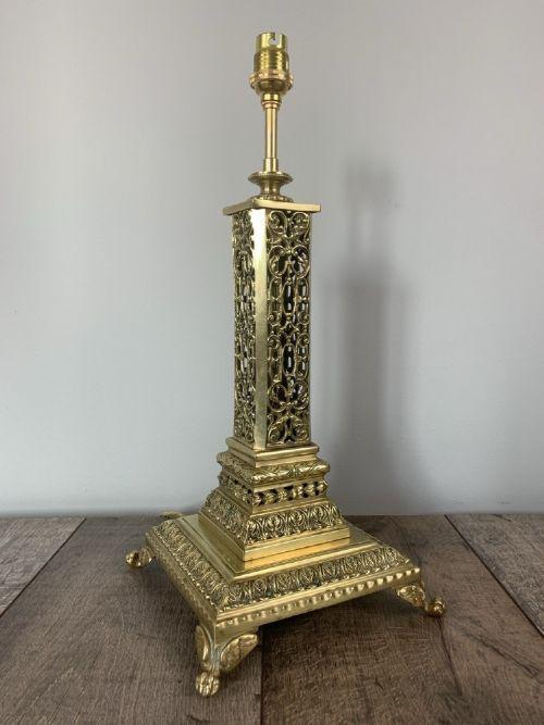 Victorian Pierced Brass Column Table Lamp, Rewired And Pat Tested