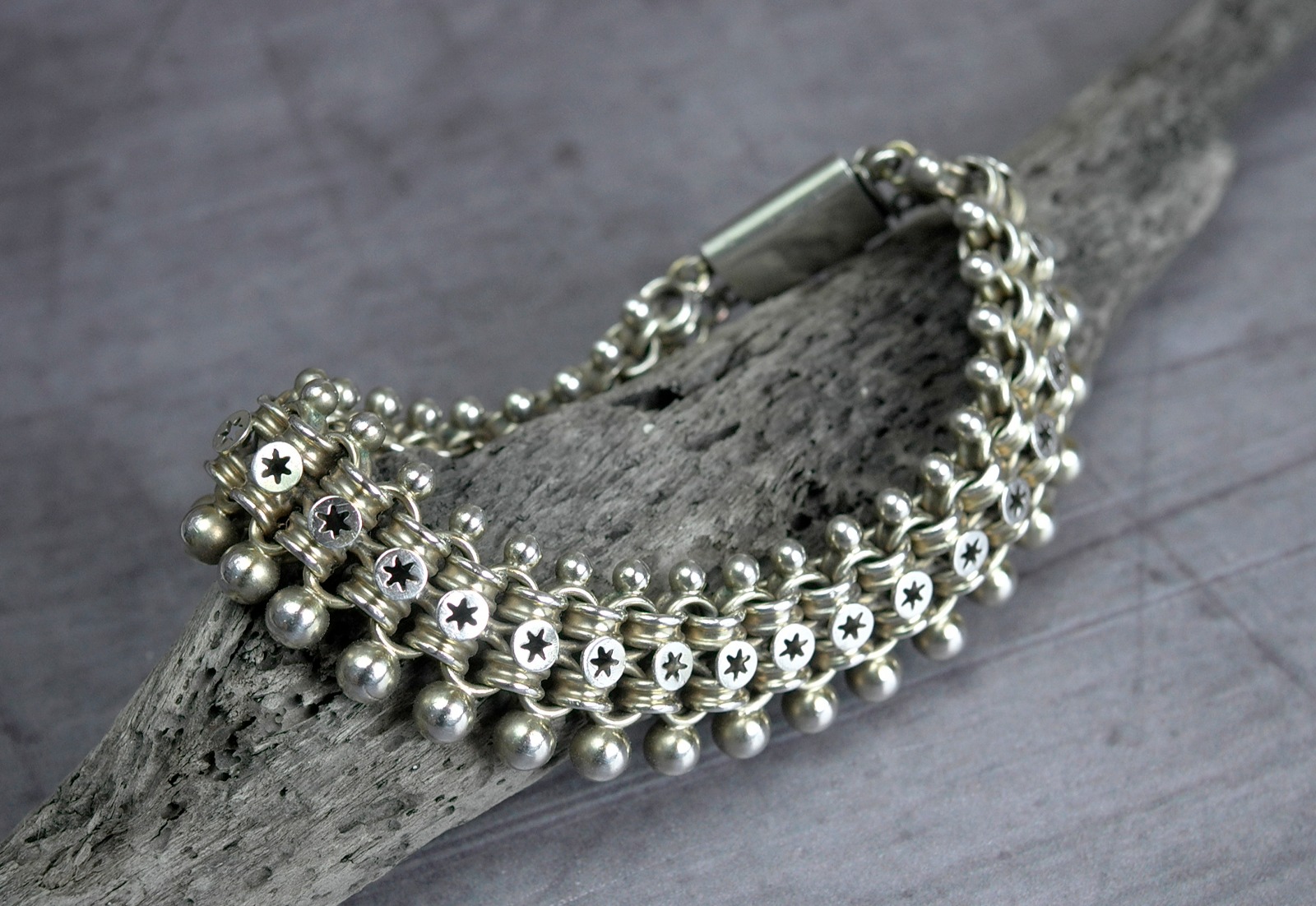 Victorian Pierced Silver Gilt Star & Ball Chain Bracelet c.1890