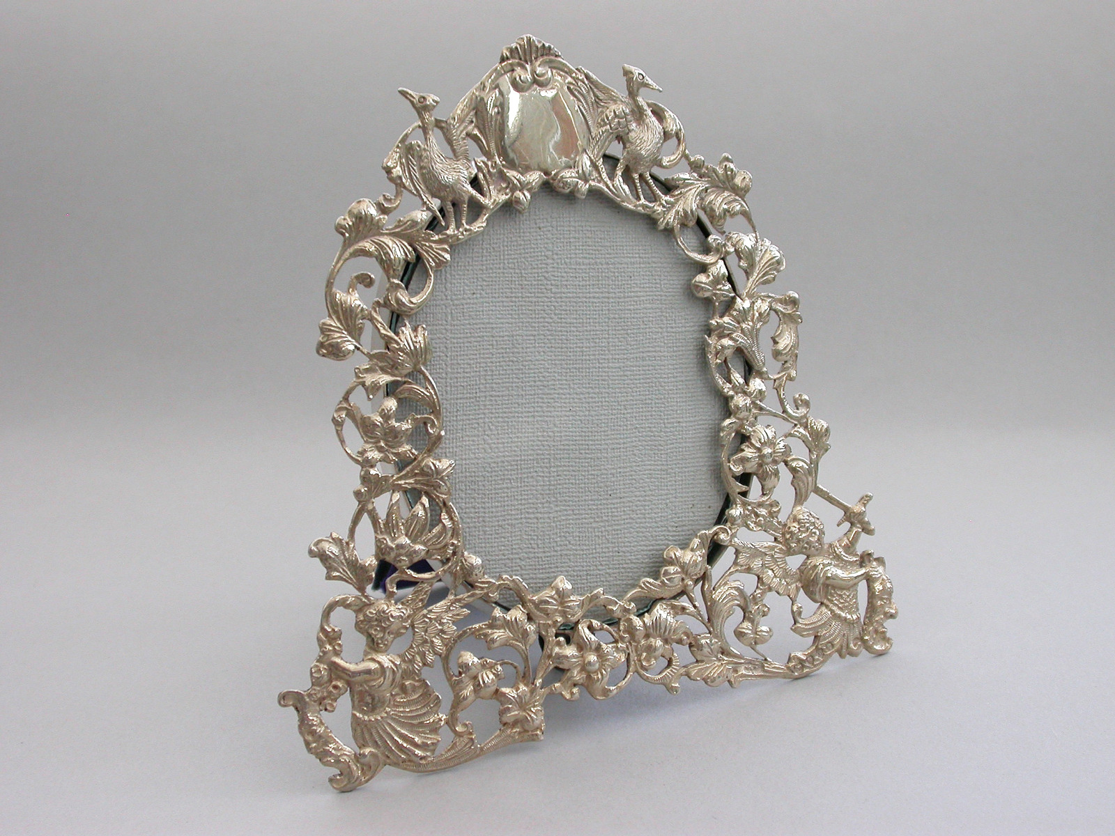 Victorian Pierced Silver Photo Frame - Cherubs & Exotic Birds by William Comyns, London, 1886