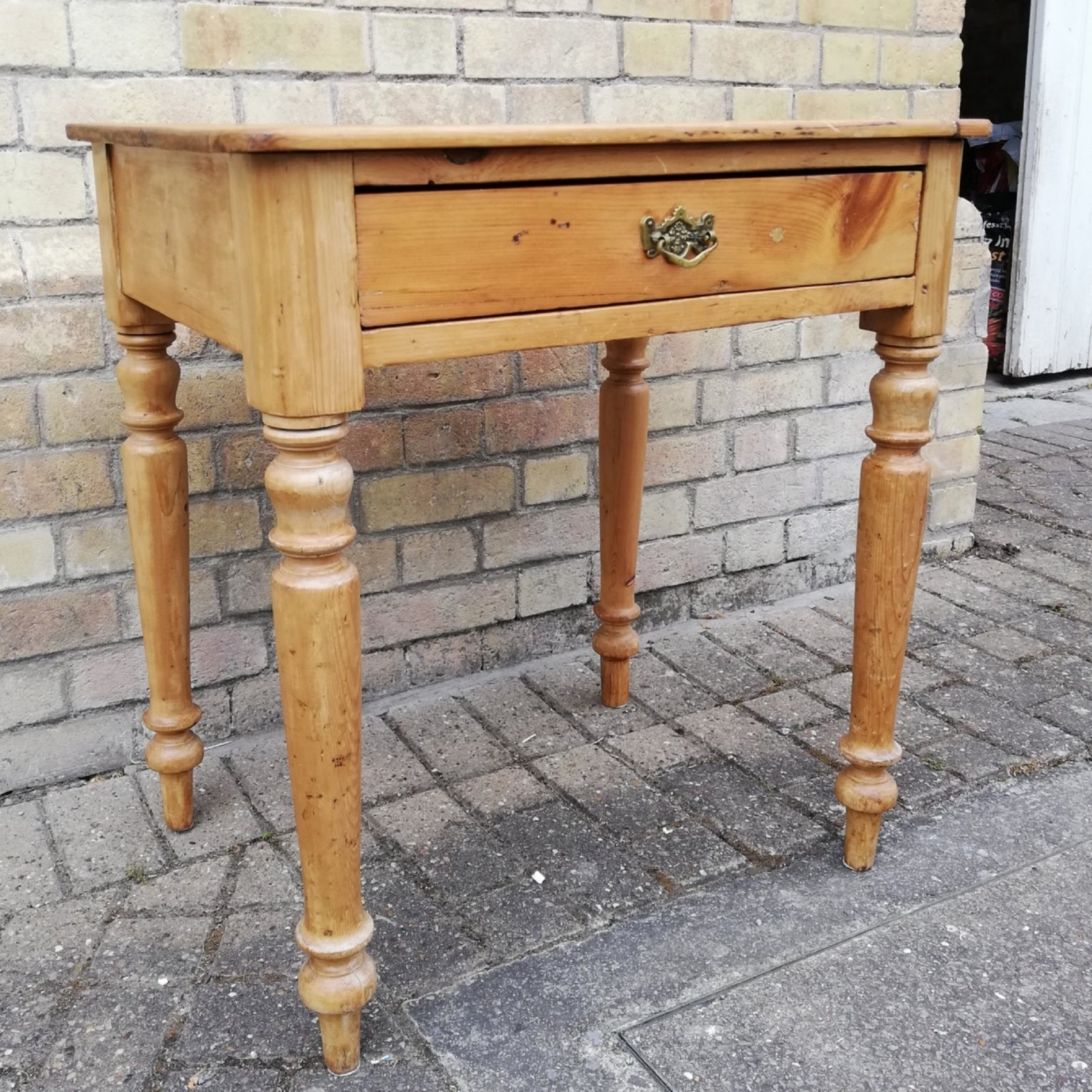 Victorian Pine Desk or Hall Table with Drawer