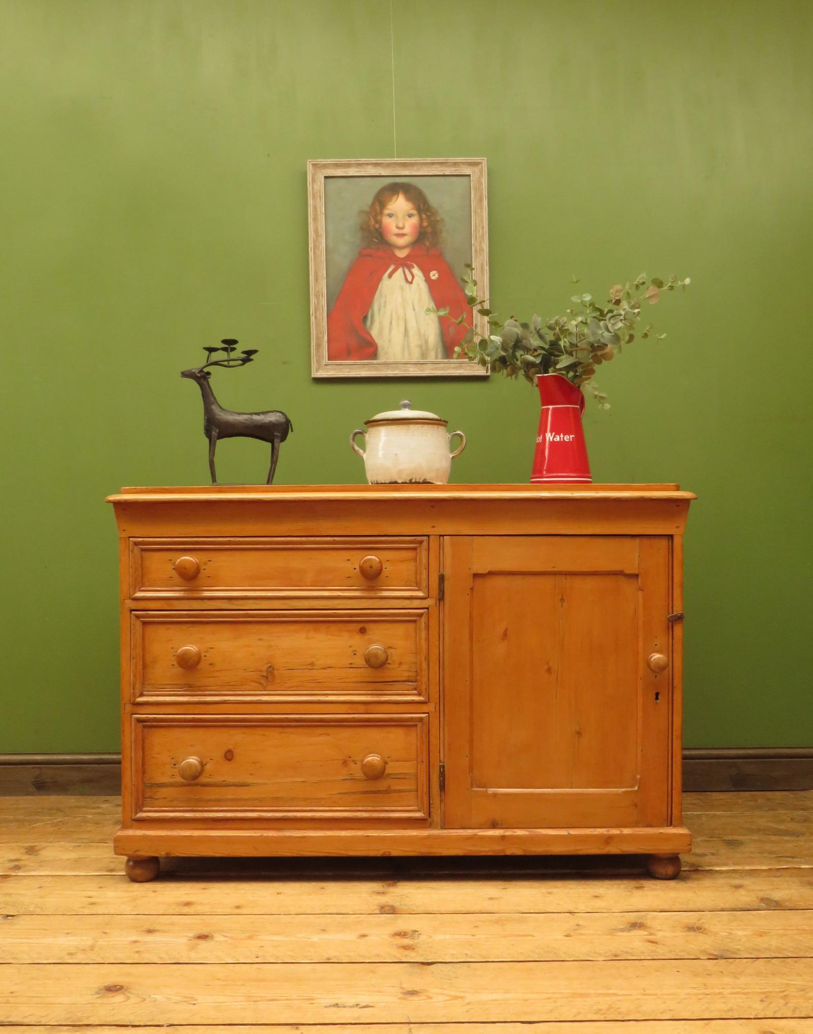 Victorian Pine Housekeepers Sideboard with Cupboard and Drawers