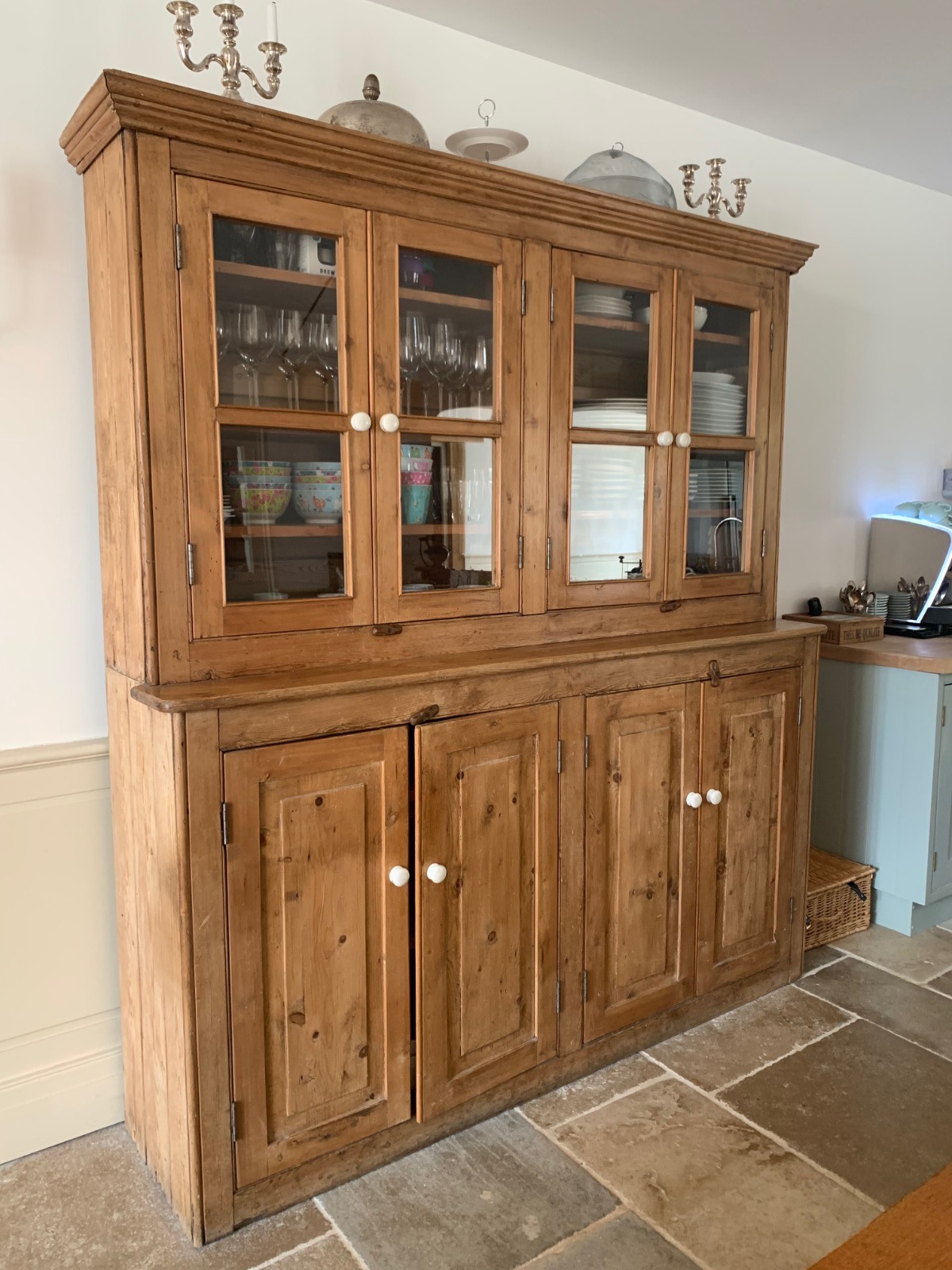 Victorian Pine Side Cabinet -Dresser- Buffet with Arrangement of Glazed and Panelled Cupboard Doors 183cm Wide