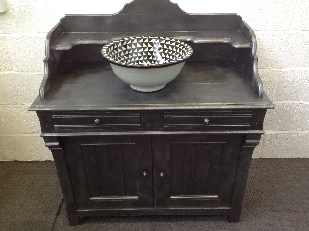 Victorian Pine Washstand Upcycled Gun Metal & Moroccan Pottery Sink Installed Vanity Unit