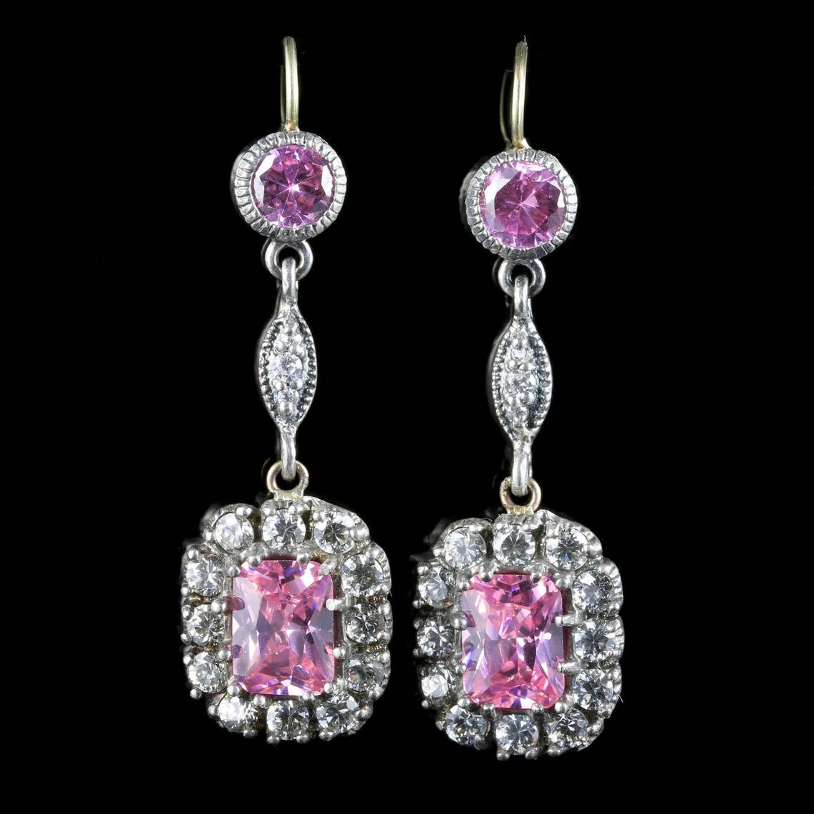 Victorian Pink Paste Silver Earrings Gold Wires