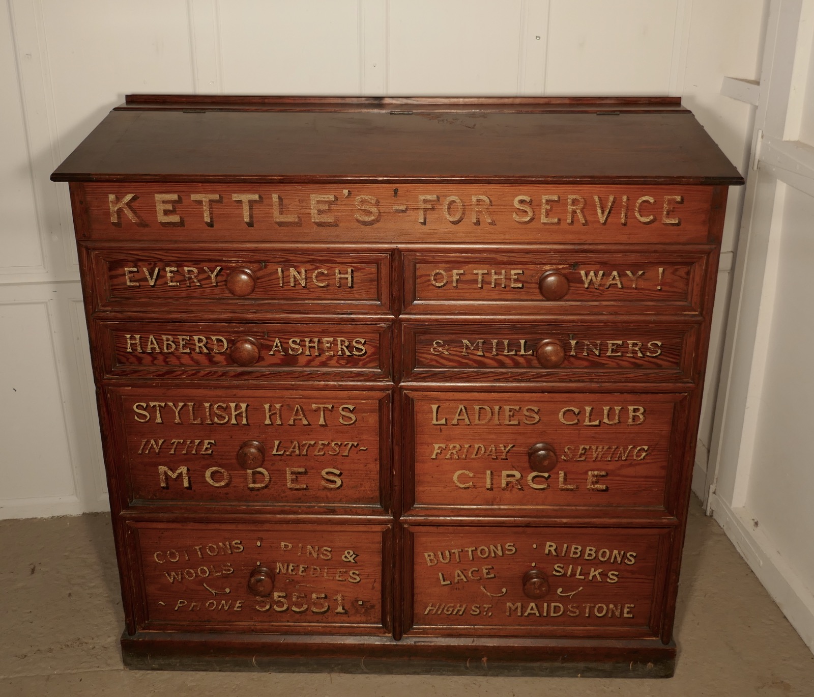 Victorian Pitch Pine Painted Haberdashers Shop Cabinet, Cashiers or Clarks Desk