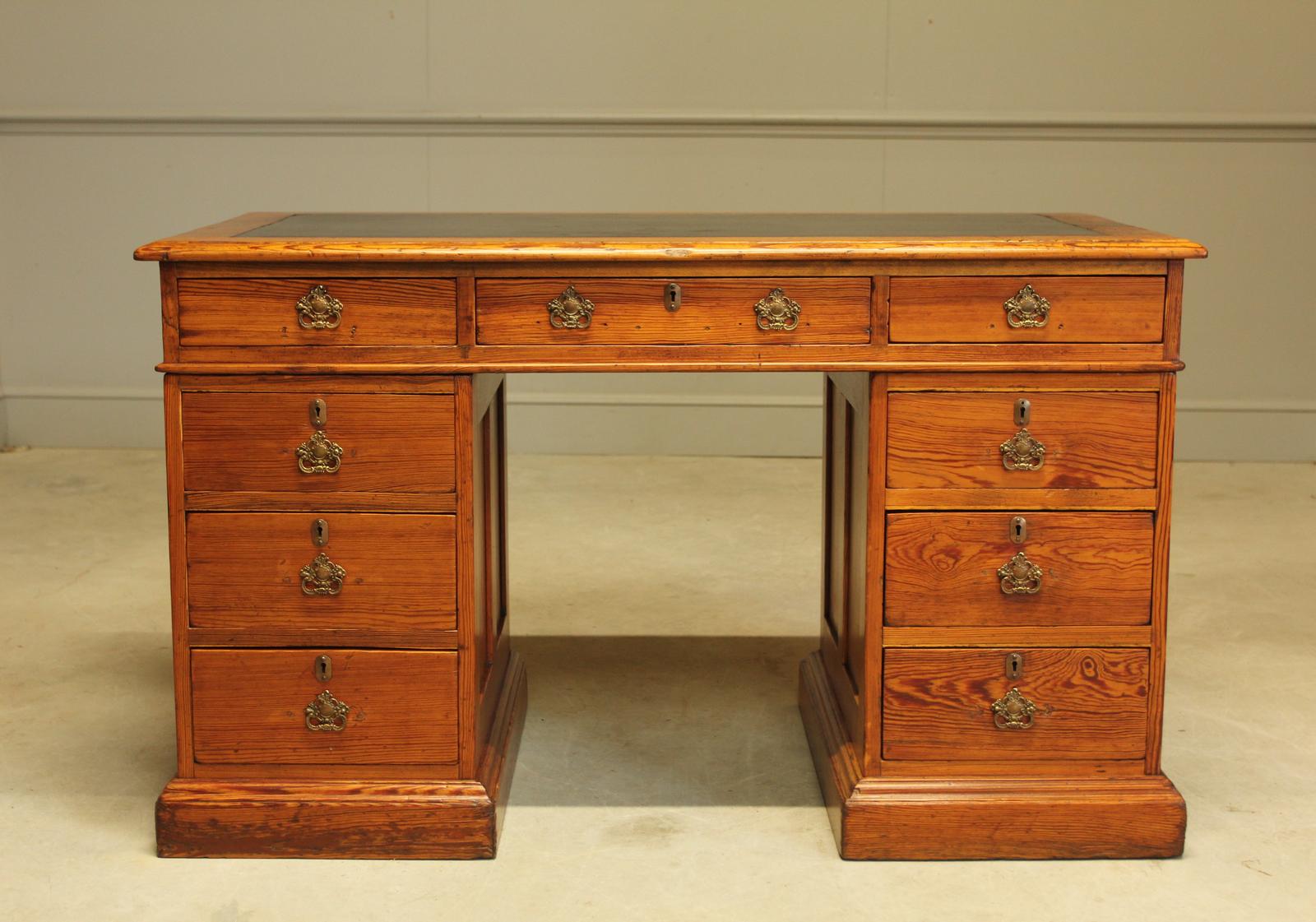Victorian Pitch Pine Twin Pedestal Writing Desk (1 of 10)