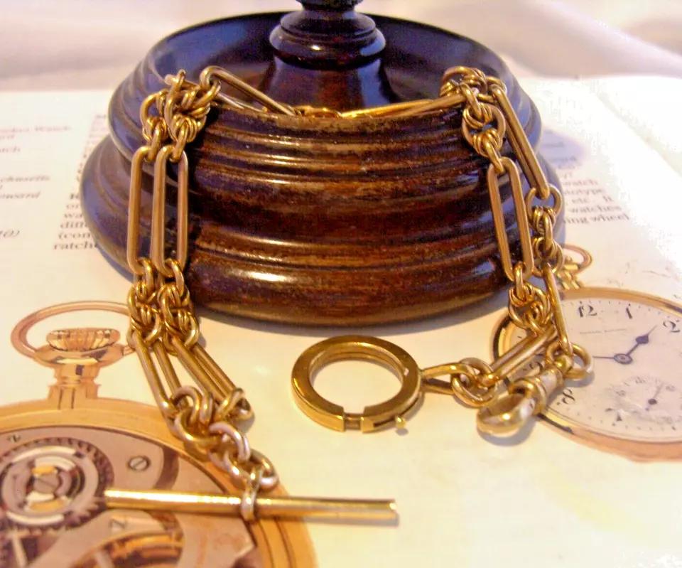 Victorian Pocket Watch Chain 12ct Gold Filled 1890s Antique Fancy Albert with T Bar