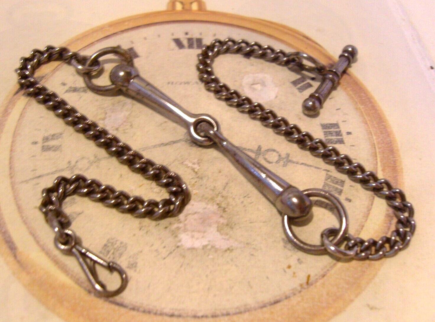 Victorian Pocket Watch Chain 1850s Large Steel Albert With Horse Snaffle Bit