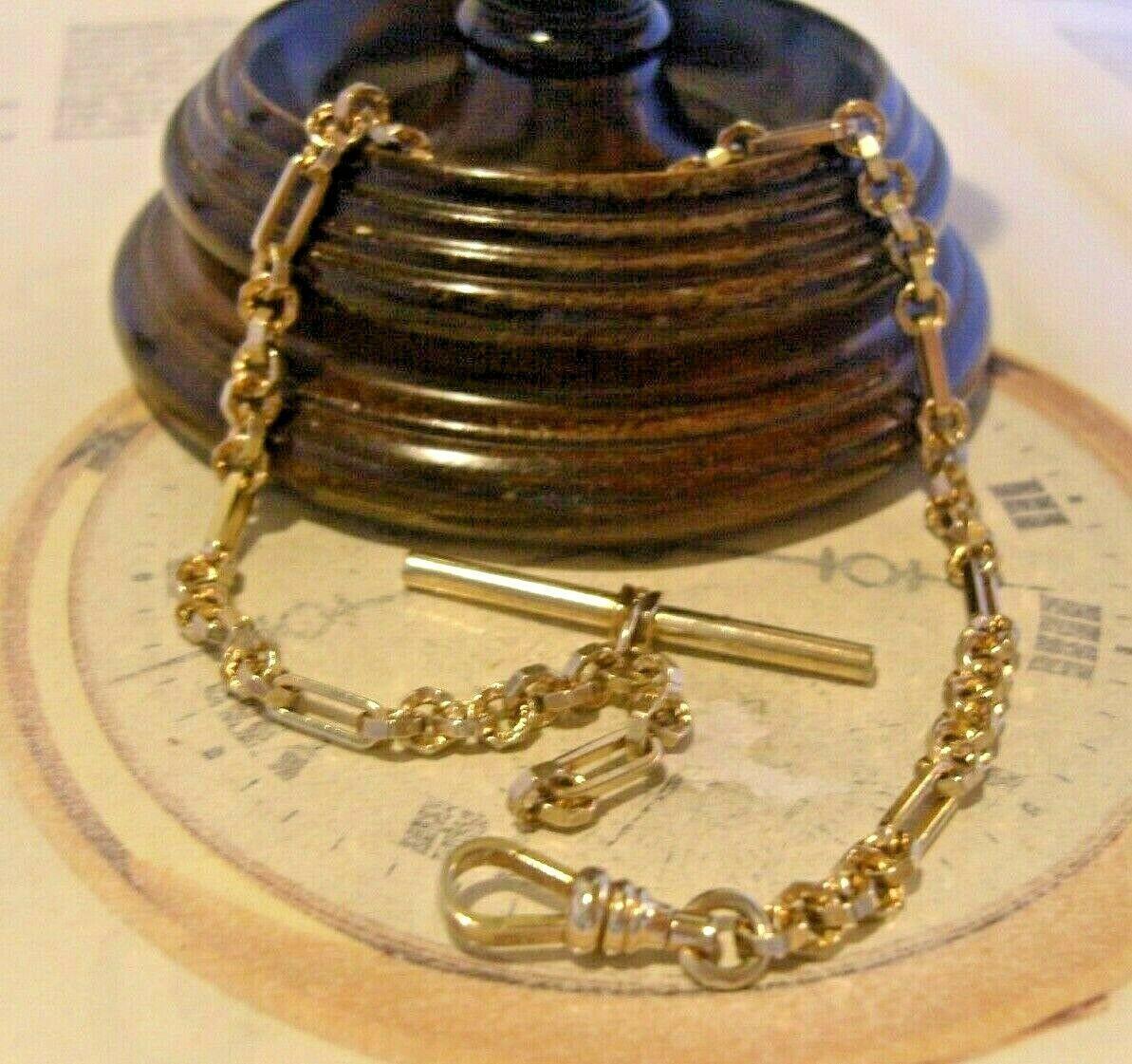 Victorian Pocket Watch Chain 1876 Antique American Large Brass Fancy Albert With T Bar