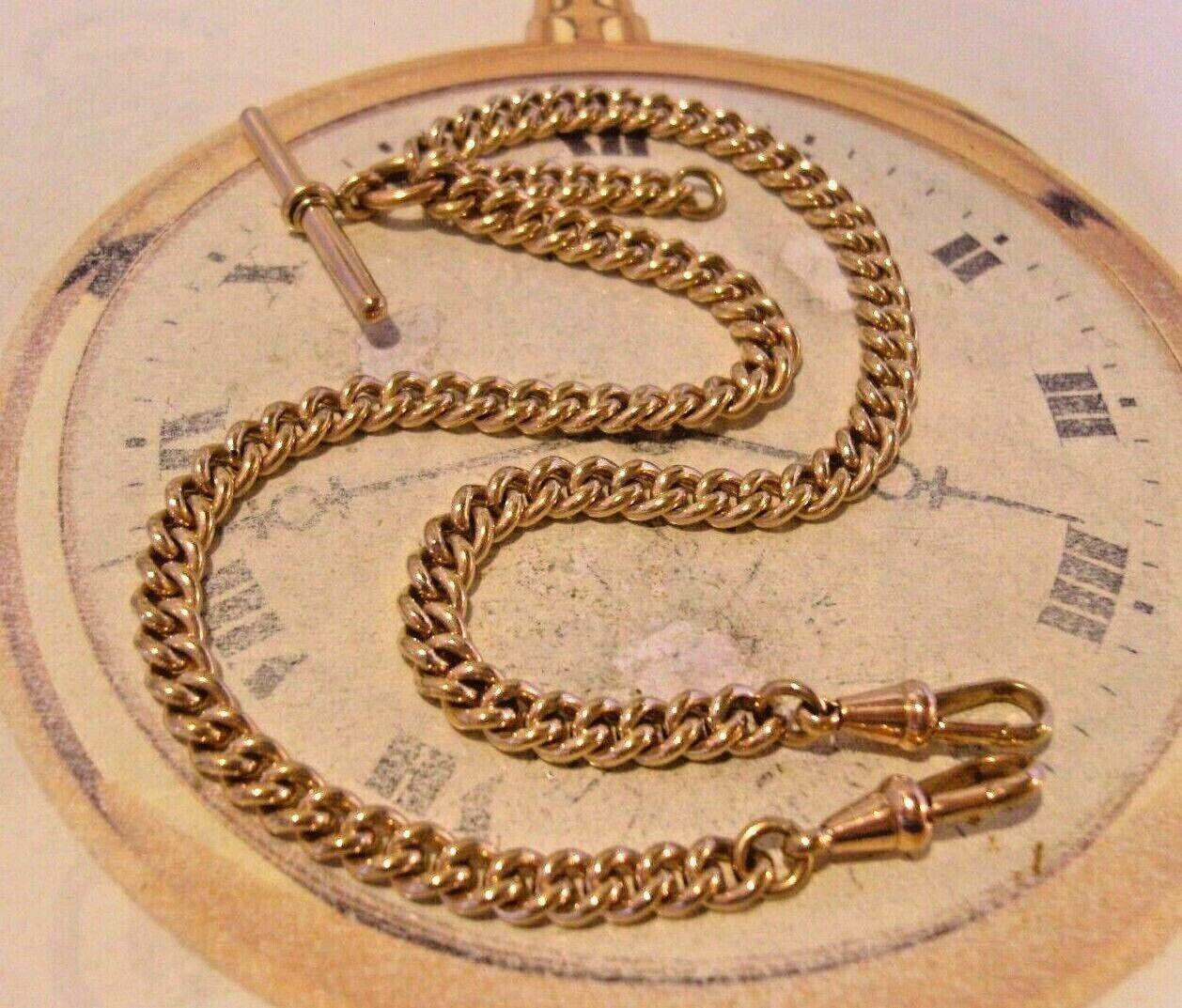 Victorian Pocket Watch Chain 1890s Antique 10ct Rose Rolled Gold Albert