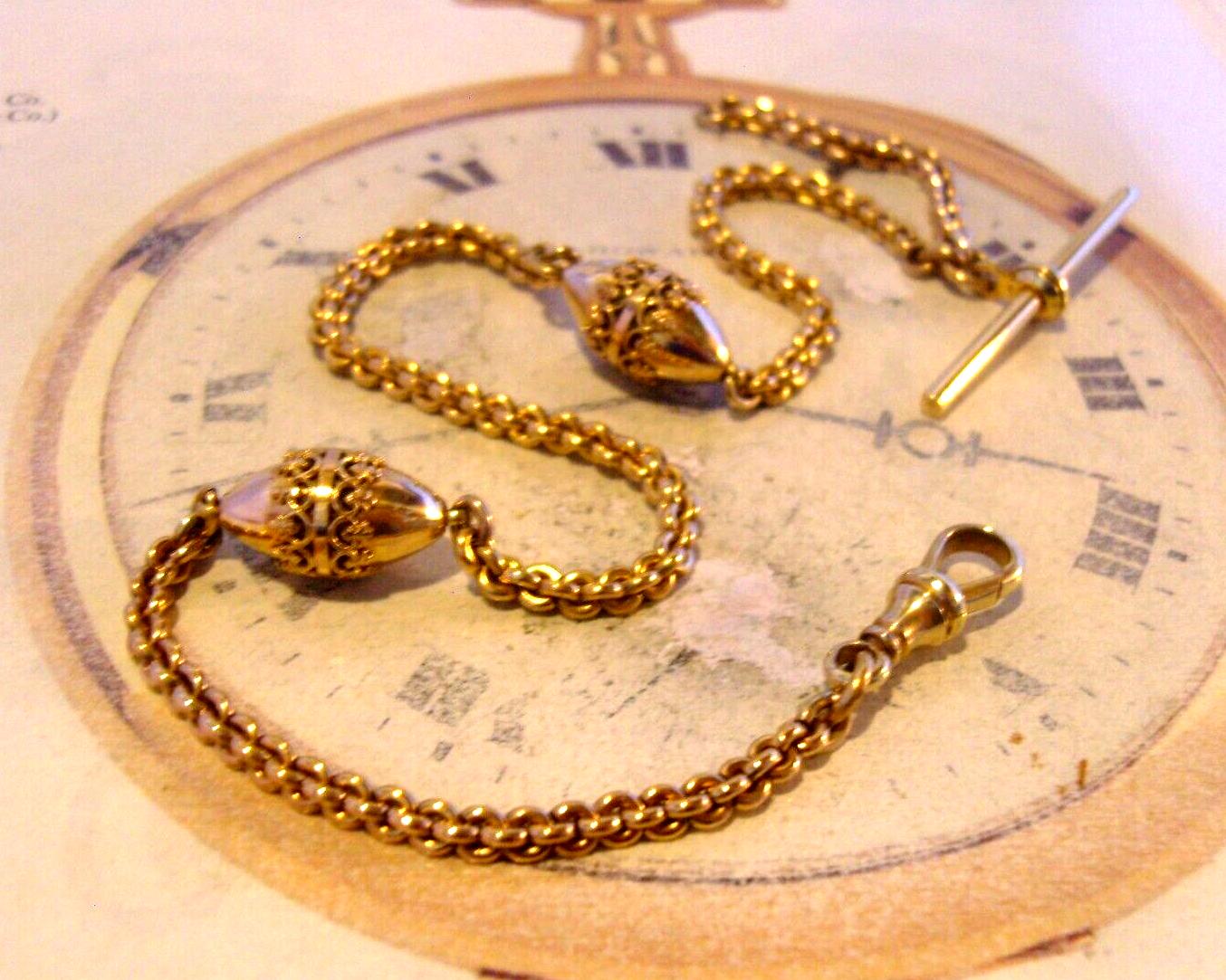 Victorian Pocket Watch Chain 1890s Antique 12ct Gold Filled Fancy Albert With T Bar