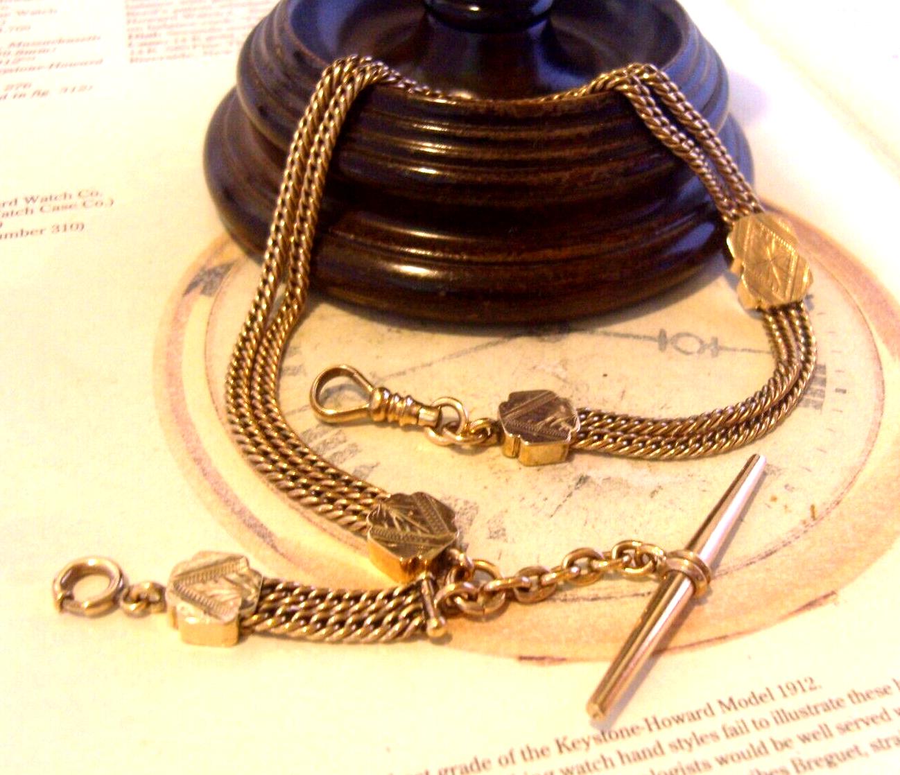 Victorian Pocket Watch Chain 1890s Antique 12ct Rose Gold Filled Large Double Albert