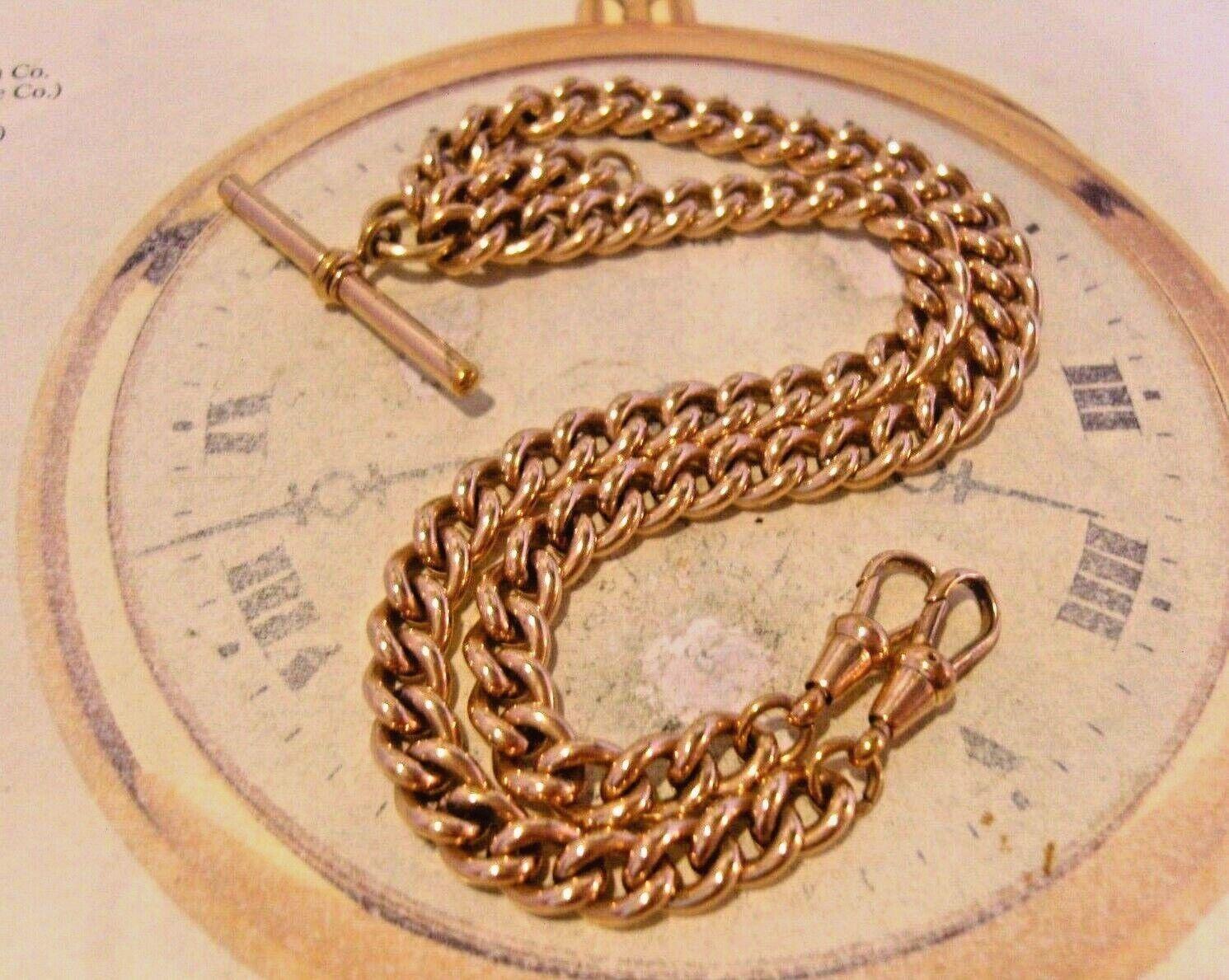 Victorian Pocket Watch Chain 1890s Antique 12ct Rose Rolled Gold Albert With T Bar 51.9 Grams