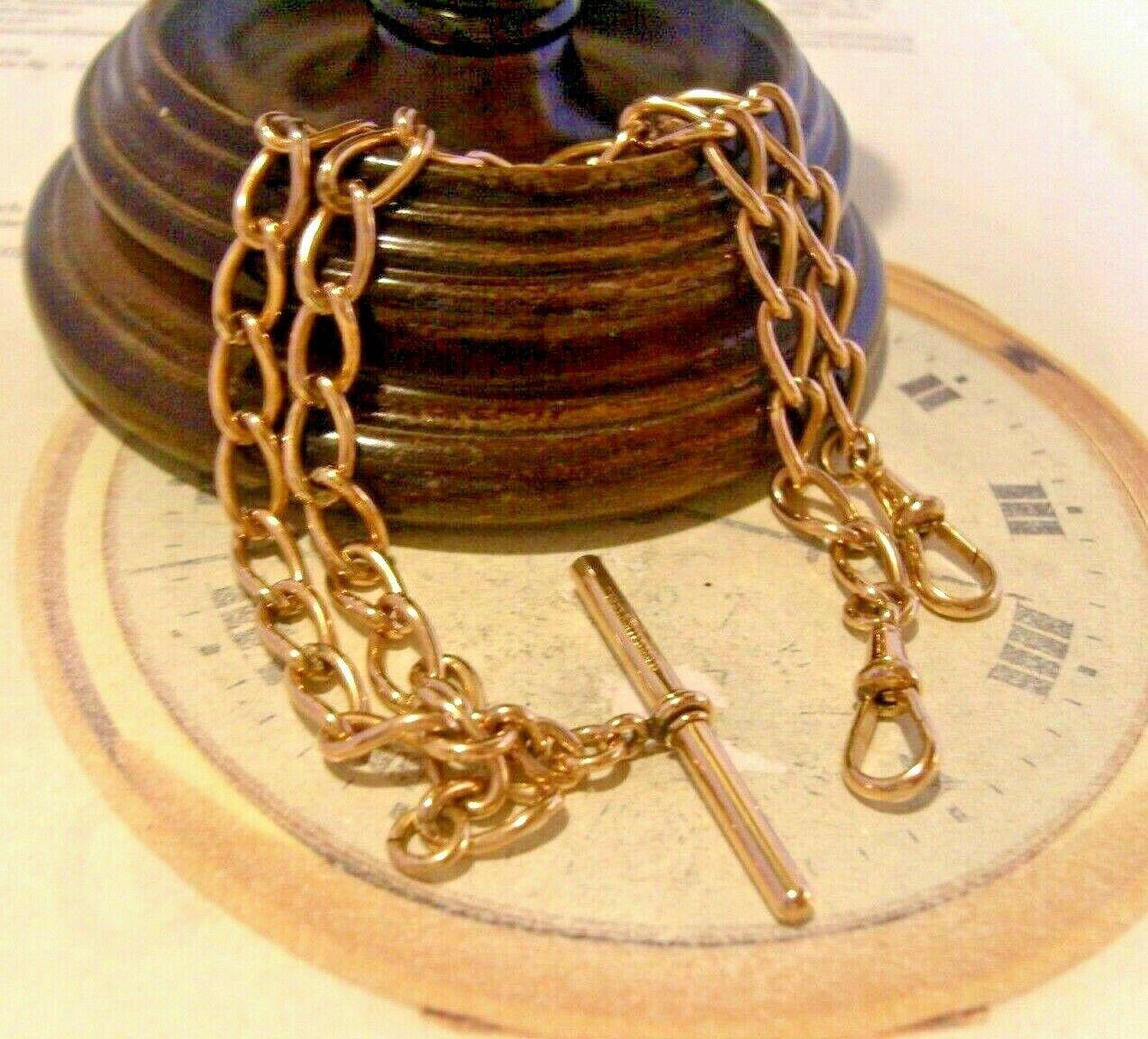 Victorian Pocket Watch Chain 1890s Antique 12ct Rose Rolled Gold Albert With T Bar